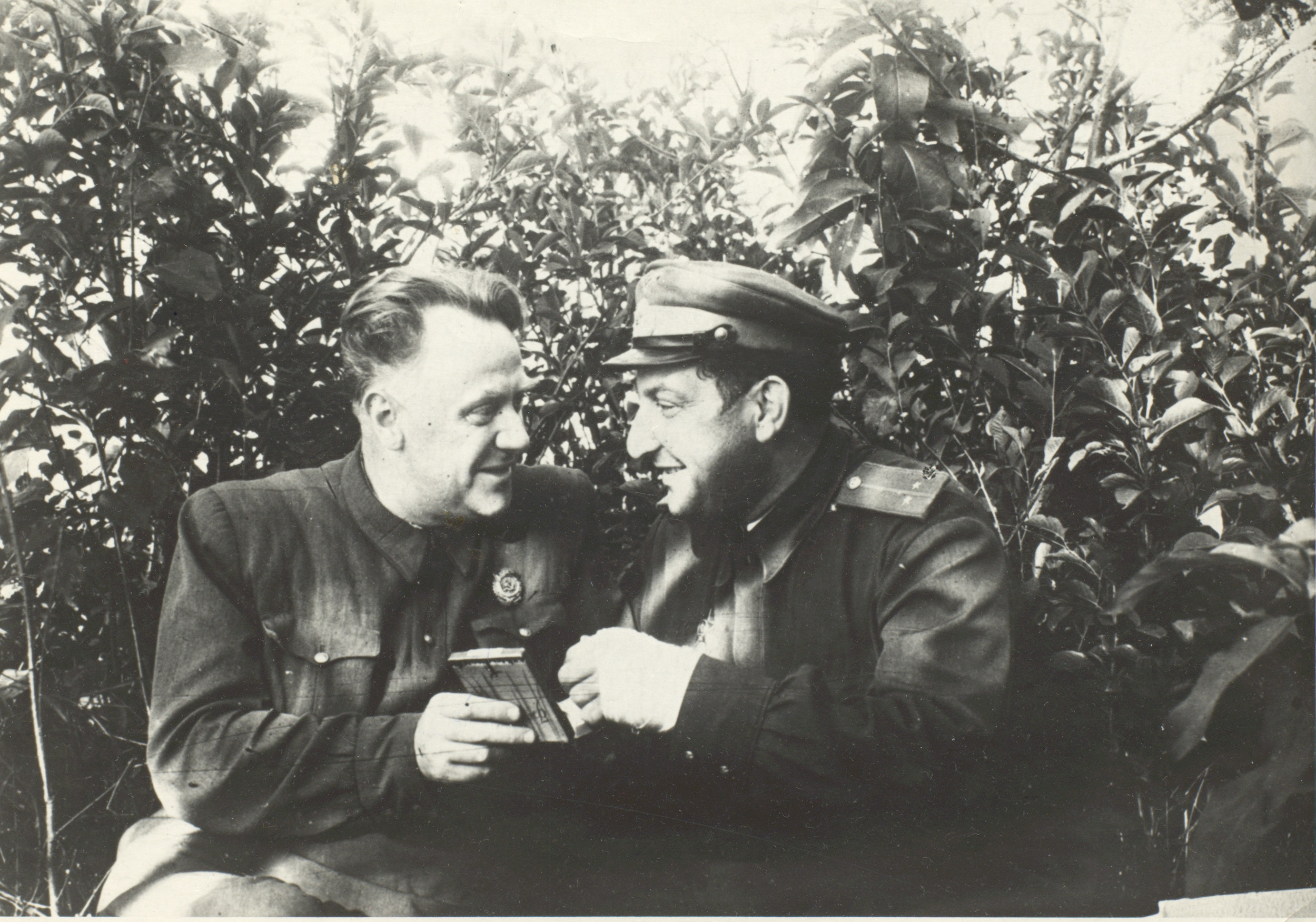 Фотография М.И. Жарова с летчиком 1-й Воздушной армии, ставшим прообразом Баранова в фильме «Воздушный извозчик». Июль 1943 г. Ф. 3061. Оп. 1. Ед. хр. 244. Л. 13