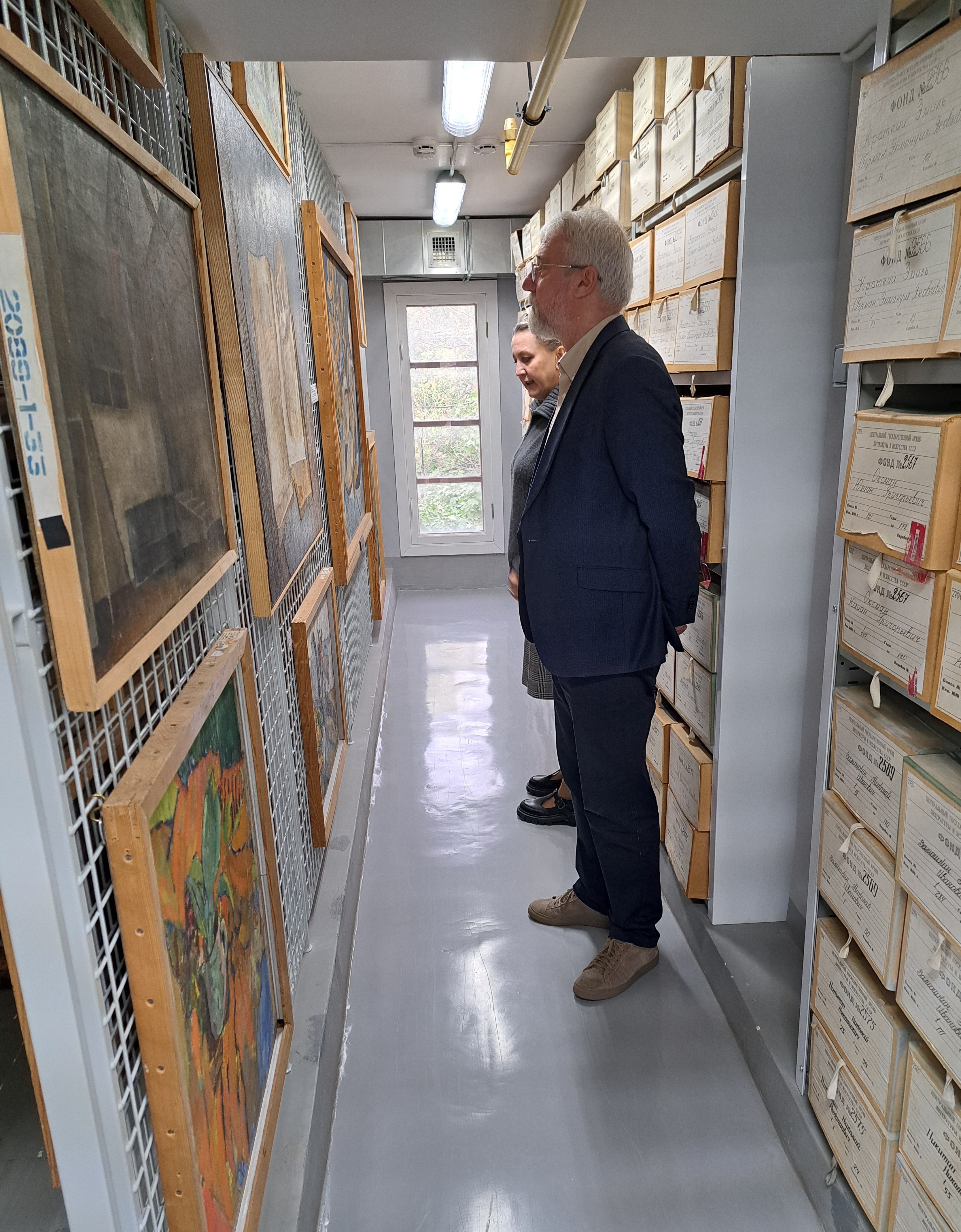 Затем зам. директора архива — главный хранитель Н.Н. Ефимова представила гостю некоторые собрания РГАЛИ, продемонстрировав целый ряд автографов в архивохранилище личных фондов.
