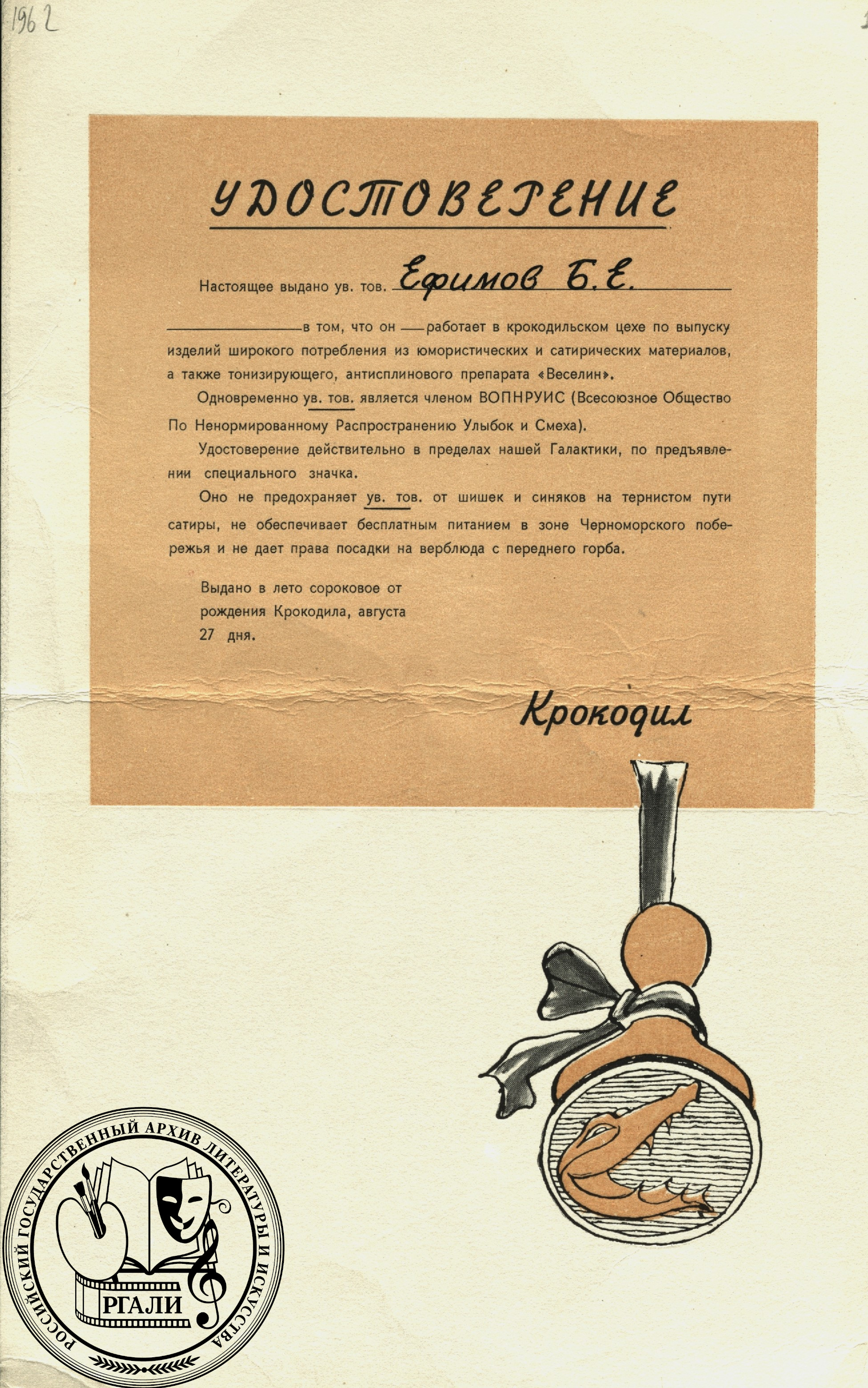 В фонде также находятся материалы к биографии Б.Е. Ефимова: справки и удостоверения о работе в редакциях газет и журналов, пропуска, членские билеты, удостоверения редакций и газет.