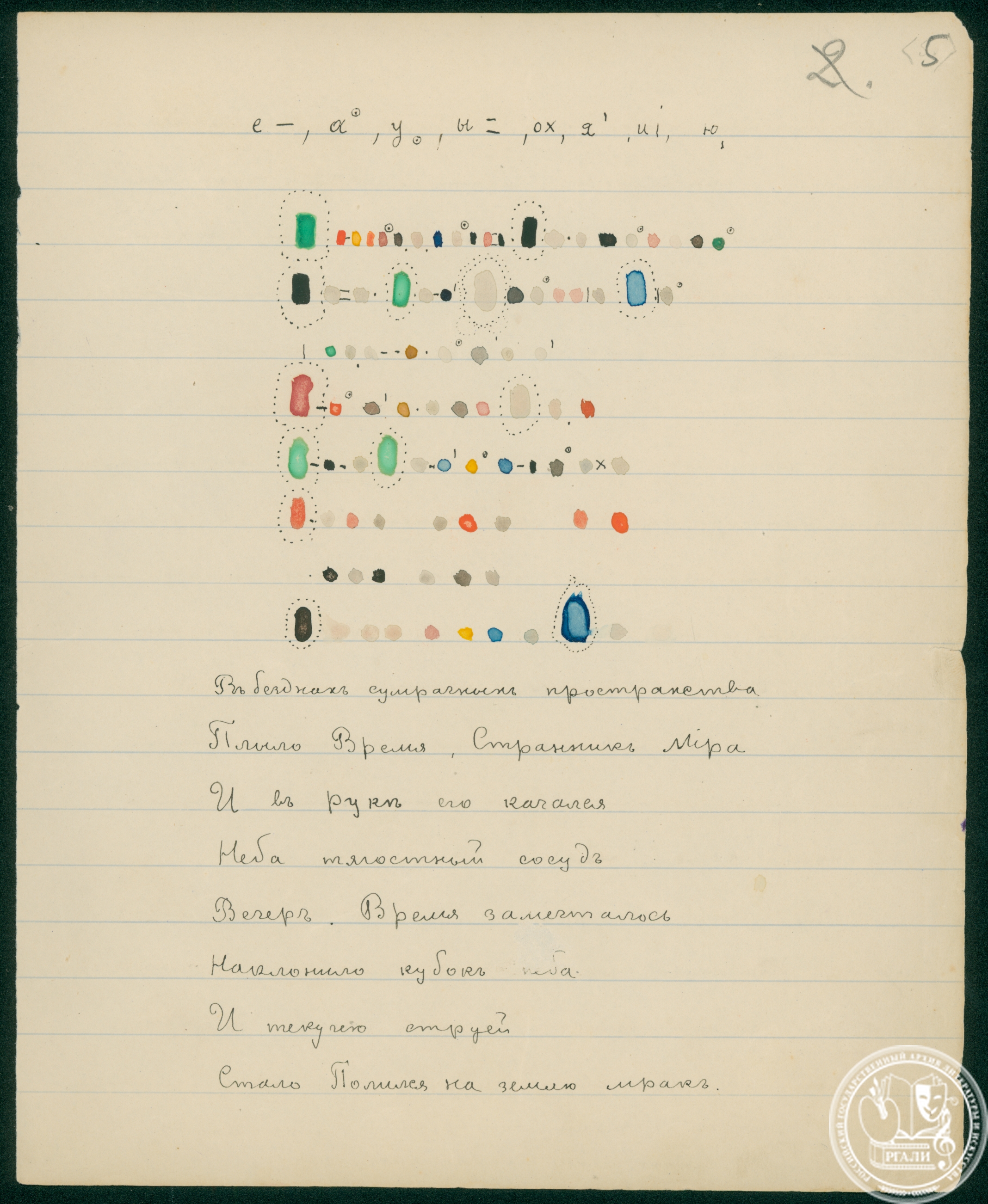 В экспозицию вошло несколько документов из фондов Московского отделения Русского музыкального общества (Ф. 661) и Строгановского центрального художественно-промышленного училища (Ф. 677).