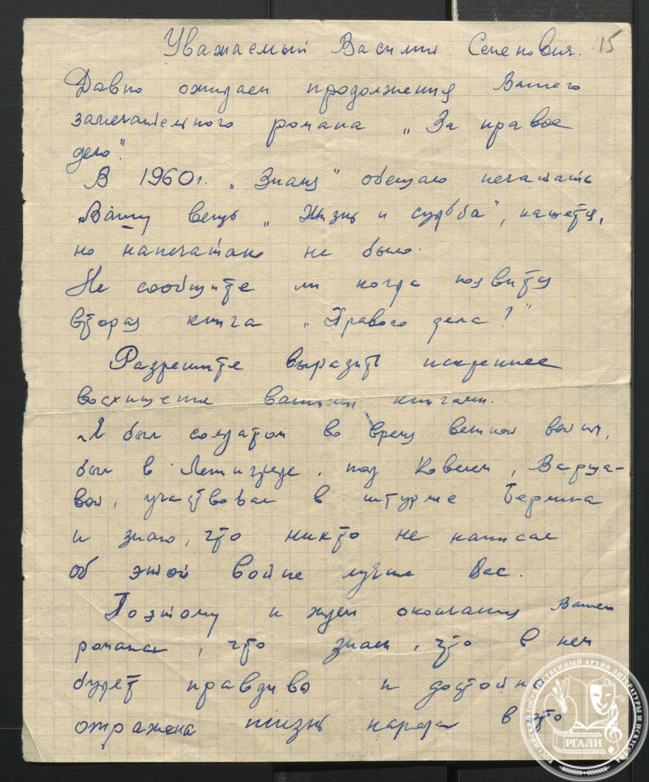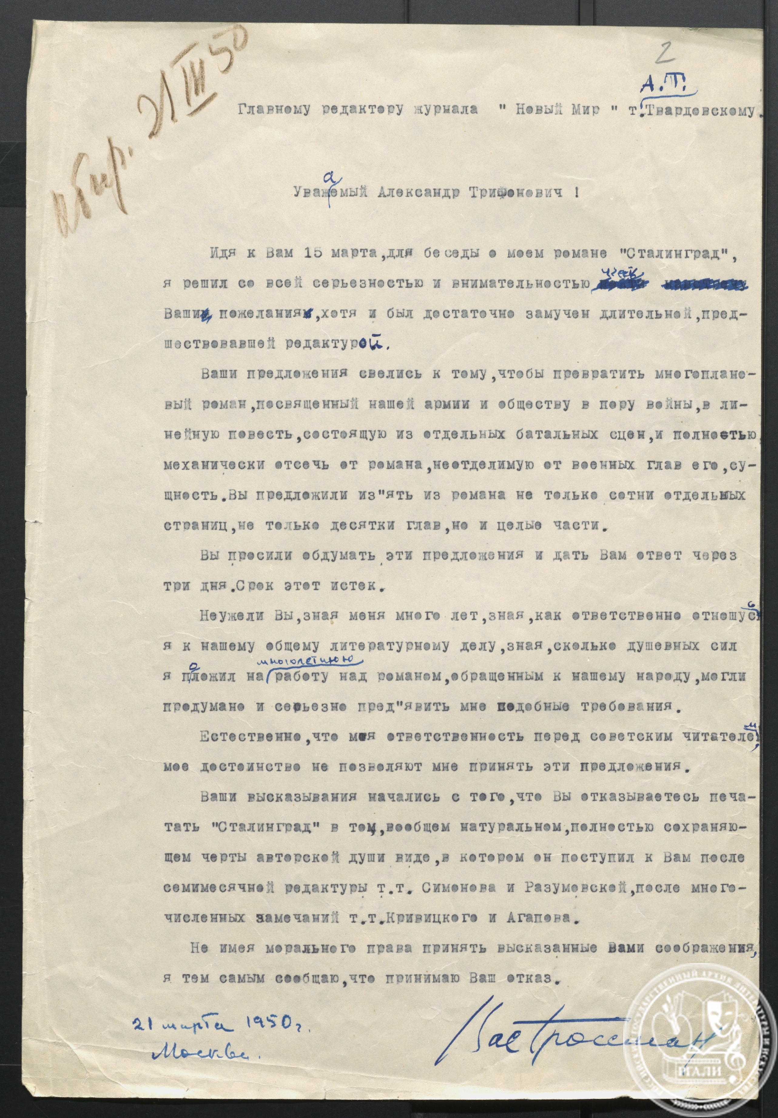 В.С. Гроссман тяжело переживал эти события, не оставлял попыток добиться справедливости, писал письма, был на приеме у М.А. Суслова, — но все усилия оказались тщетными… При жизни писателя роман «Жизнь и судьба» так и не появился в печати; лишь некоторые отрывки, были напечатаны в журналах с редакционной правкой.