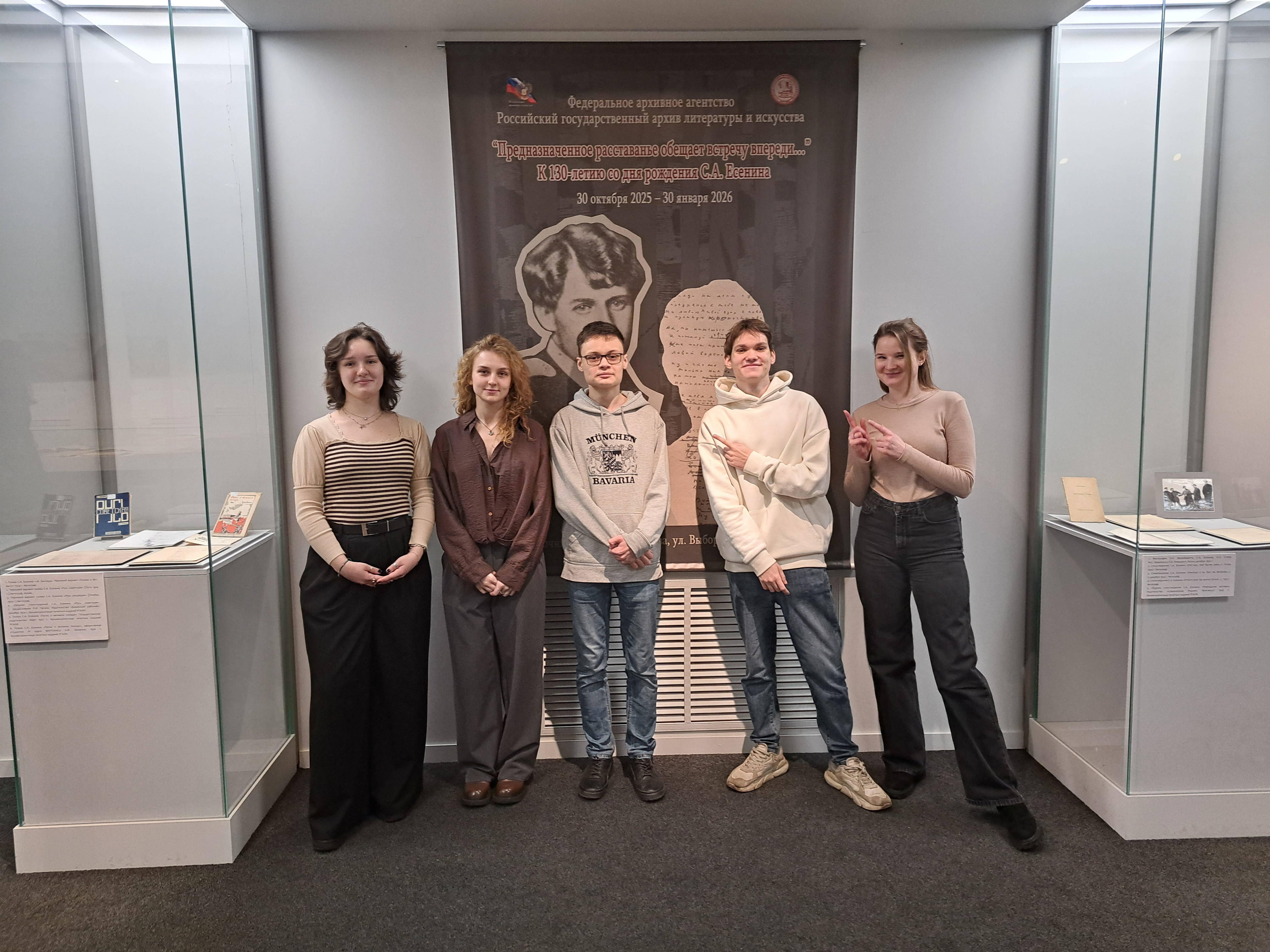 В выставочном зале РГАЛИ главный специалист К.С. Куксова провела для обучающихся кураторскую экскурсию по выставке «”Предназначенное расставанье обещает встречу впереди…”. К 130-летию со дня рождения С.А. Есенина».