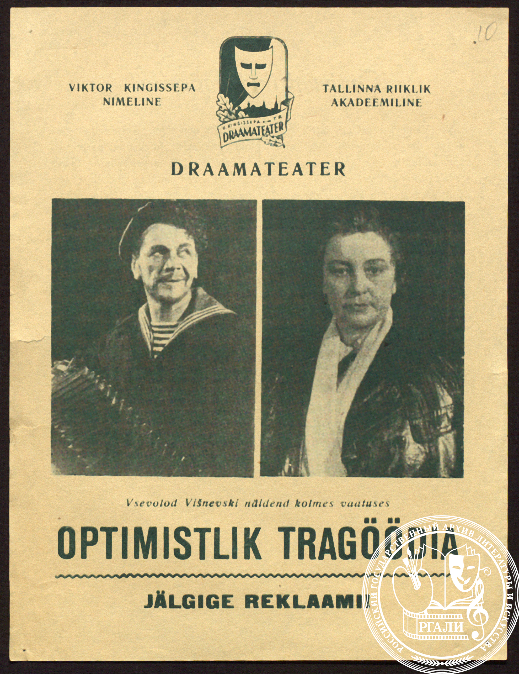 Январь 1932 года – особая дата для Вишневского, поскольку он начинает работу над пьесой, которая обошла, без преувеличения, сцены не только всего СССР, но и многие зарубежные, − над «Оптимистической трагедией». Характерно, что обрела она свое название не сразу, сменив последовательно варианты «Да здравствует жизнь», «Из хаоса». Привычное сегодня название − «Оптимистическая трагедия» − она обрела с легкой руки будущей первой исполнительницы роли комиссара − актрисы Камерного театра Алисы Коонен. Успех превзошел все ожидания, пьеса стала вершиной драматургического мастерства Всеволода Витальевича Вишневского.