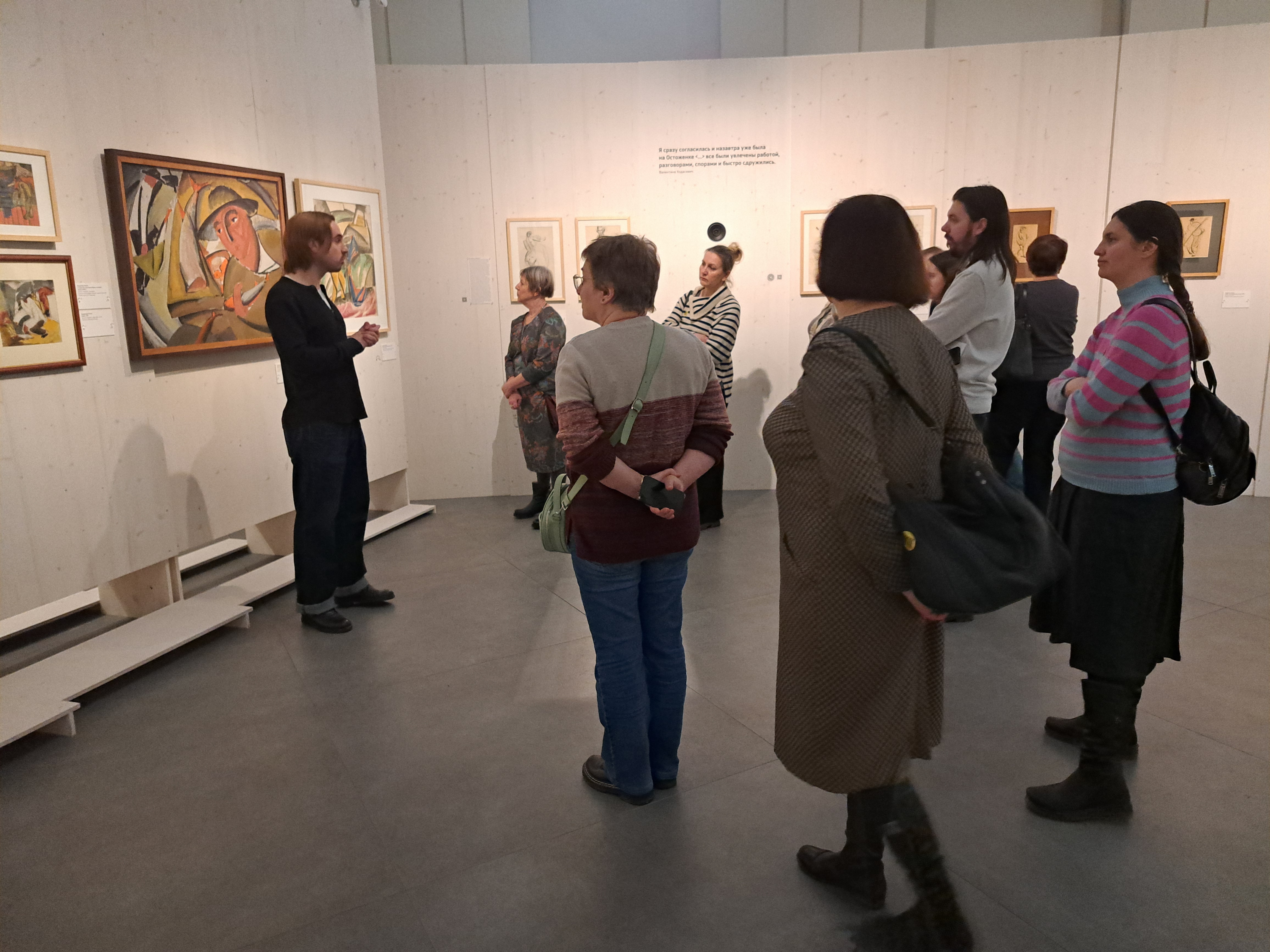 Немалую ценность выставке придает замечательная экскурсия Глеба Деренчука, который объединил в своем рассказе замечательные экспонаты выставки с мельчайшими деталями жизни Владимира Татлина и его творческими исканиями.