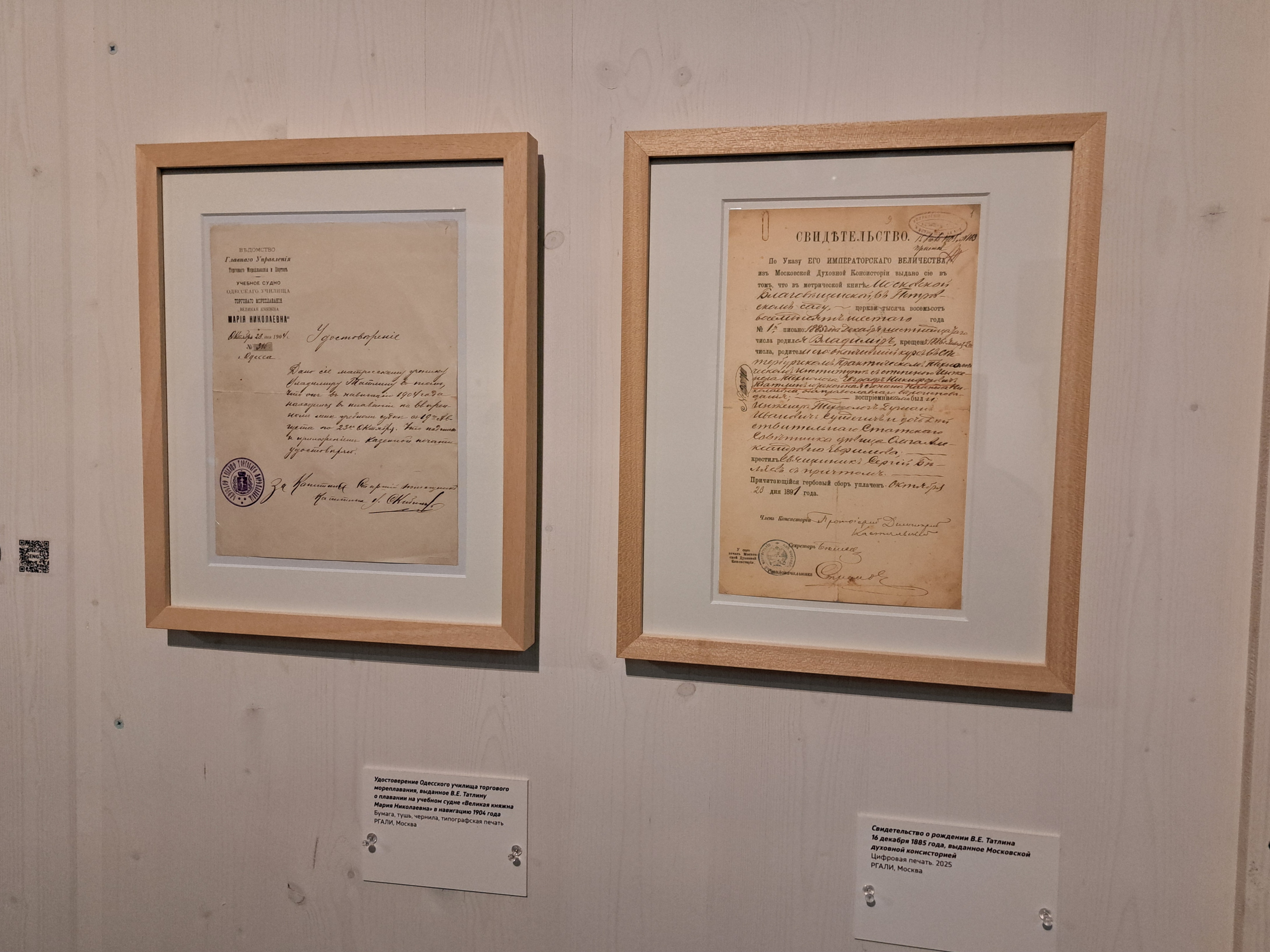 Для выставки РГАЛИ передал 16 подлинных экспонатов, среди которых 3 живописные и несколько графических работ из личного фонда художника, афиши его лекций, фотографии Татлина на выставке русского искусства в Берлине, брошюра Н. Пуни «Памятник III Интернационала. Проект худ. В.Е. Татлина», автопортрет В. Хлебникова и другие документы. В копиях представлены более 40 документов, среди которых многочисленные фотографии, документы к биографии, документы из фонда Отдела изобразительных искусств Народного комиссариата просвещения РСФСР, относящиеся к деятельности художника, и другие материалы.