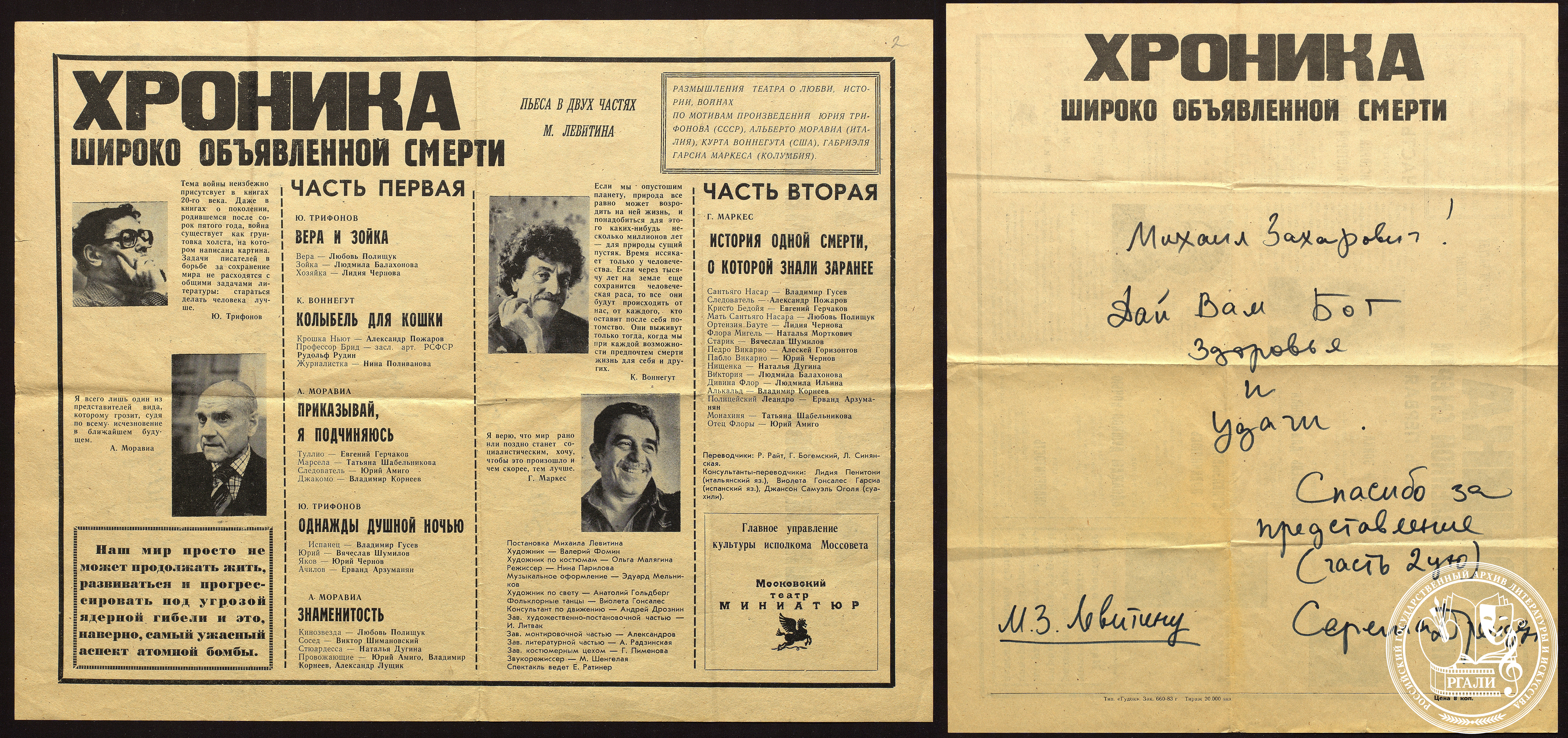 Мы, сотрудники РГАЛИ, надеемся, что Михаил Захарович еще не раз появится у нас в архиве и порадует нас новым пополнением своего фонда.