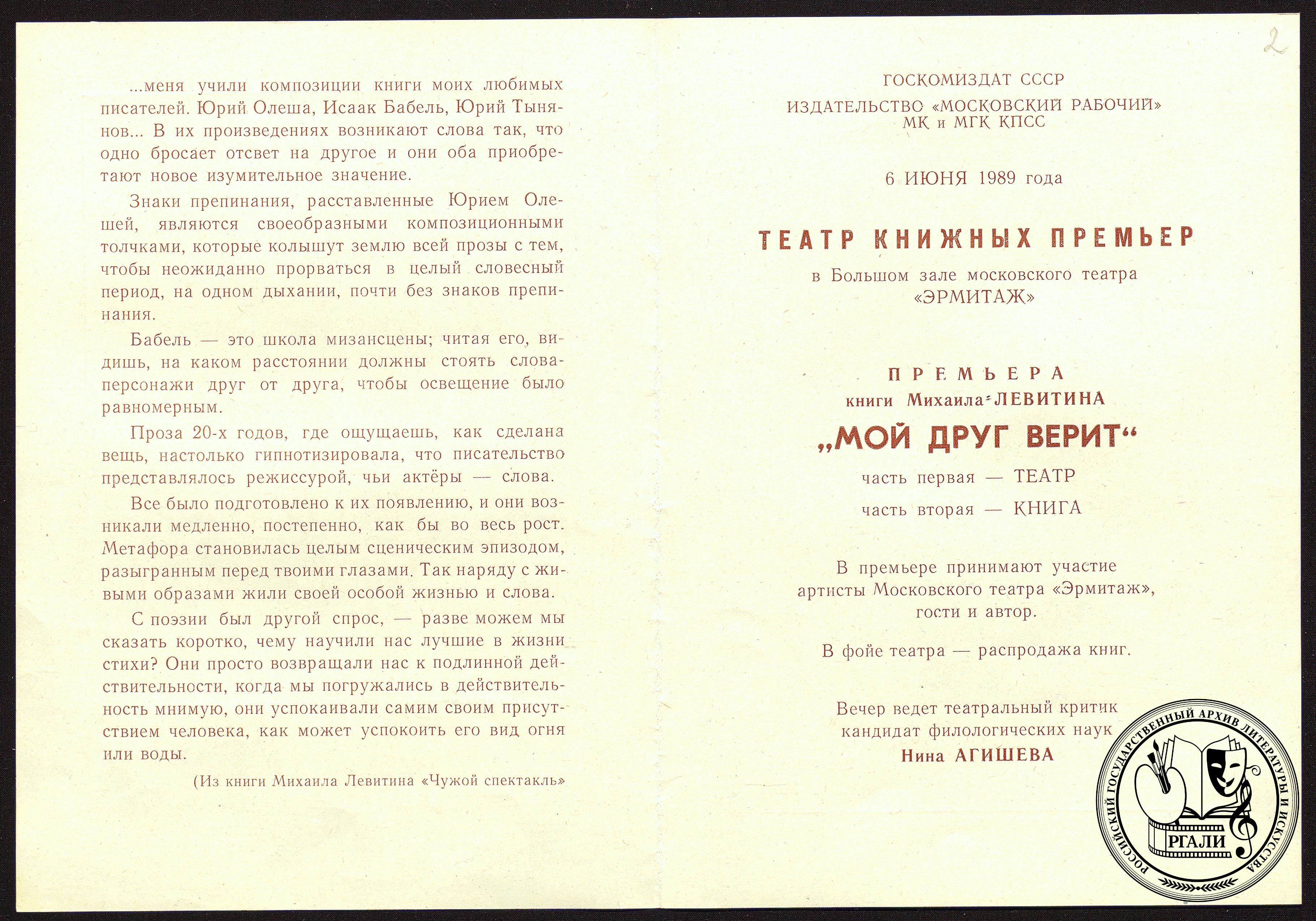 М.З. Левитин бывал в РГАЛИ, чаще как исследователь и, конечно, как наш фондообразователь.