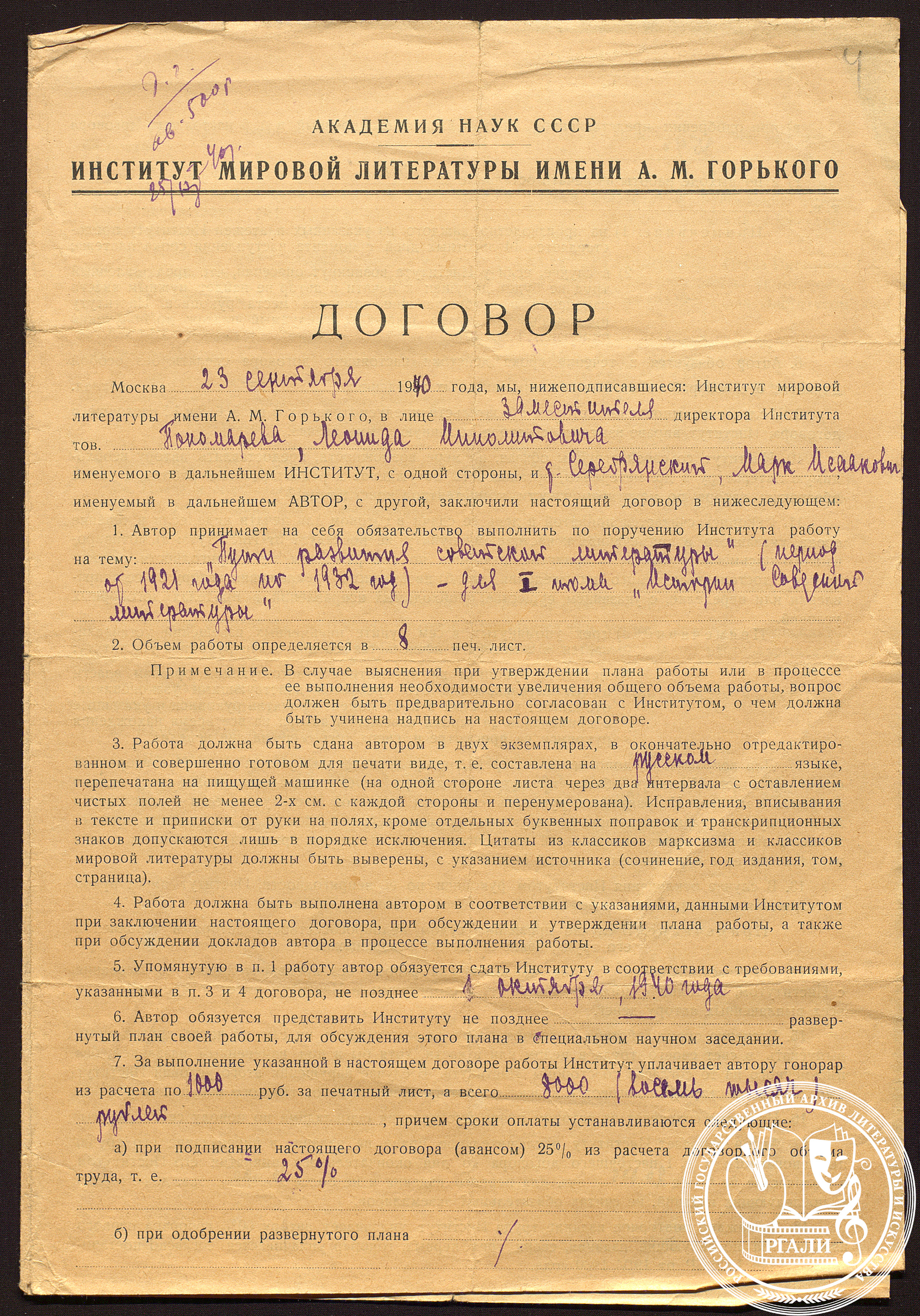 В других фондах архива можно найти около пятидесяти статей, рецензий и писем М. Серебрянского.