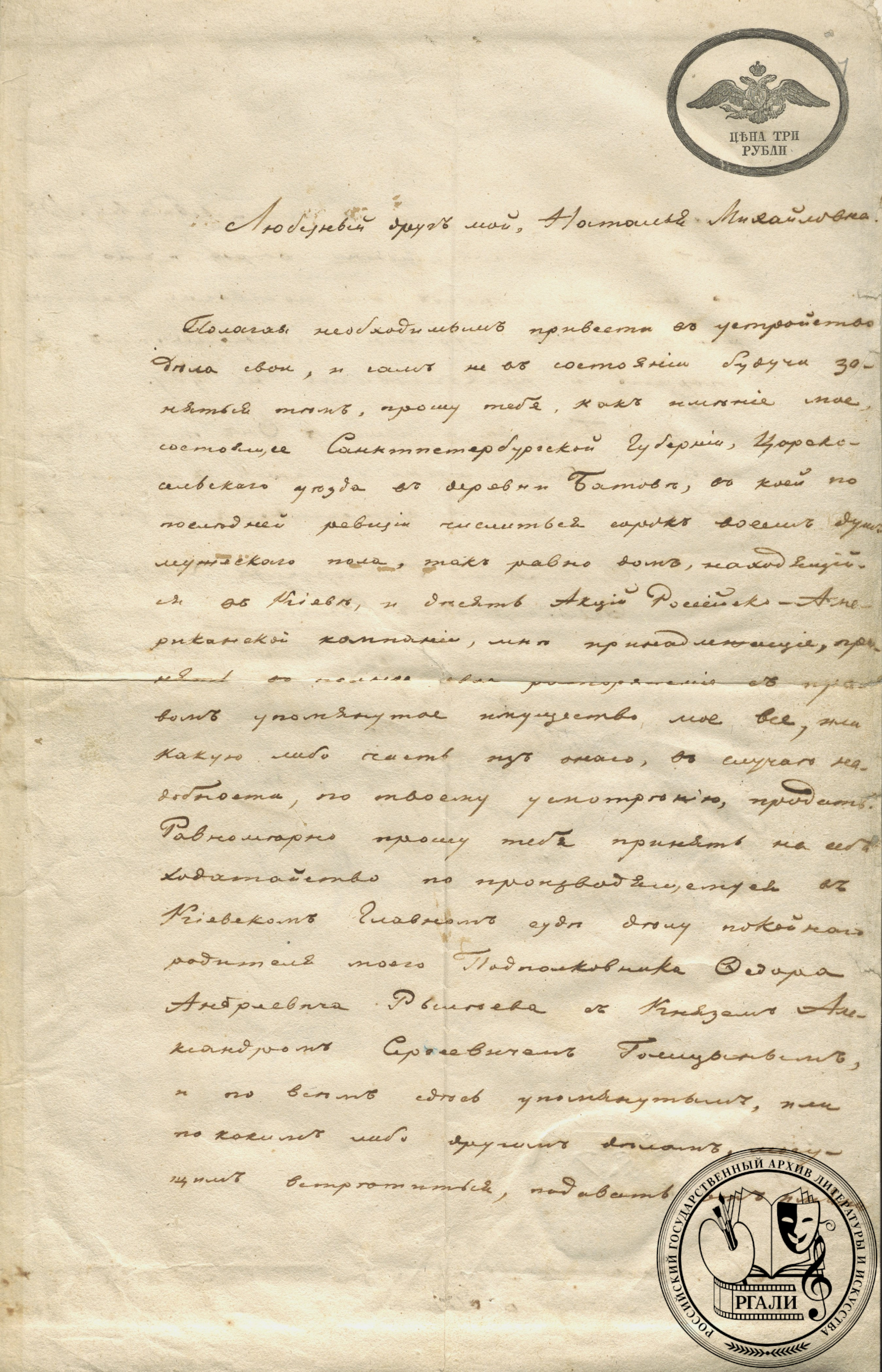 Значительное число материалов о судьбах декабристов входит в состав разных личных фондов и коллекций. Один из известнейших государственных и общественных деятелей поэт Петр Андреевич Вяземский (ф. 195) вел обширную переписку, имел широкие связи. Среди его корреспондентов − Ф.И. Глинка, А.И. Тургенев, В.А. Жуковский и многие другие, напрямую или косвенно связанные с декабристами.