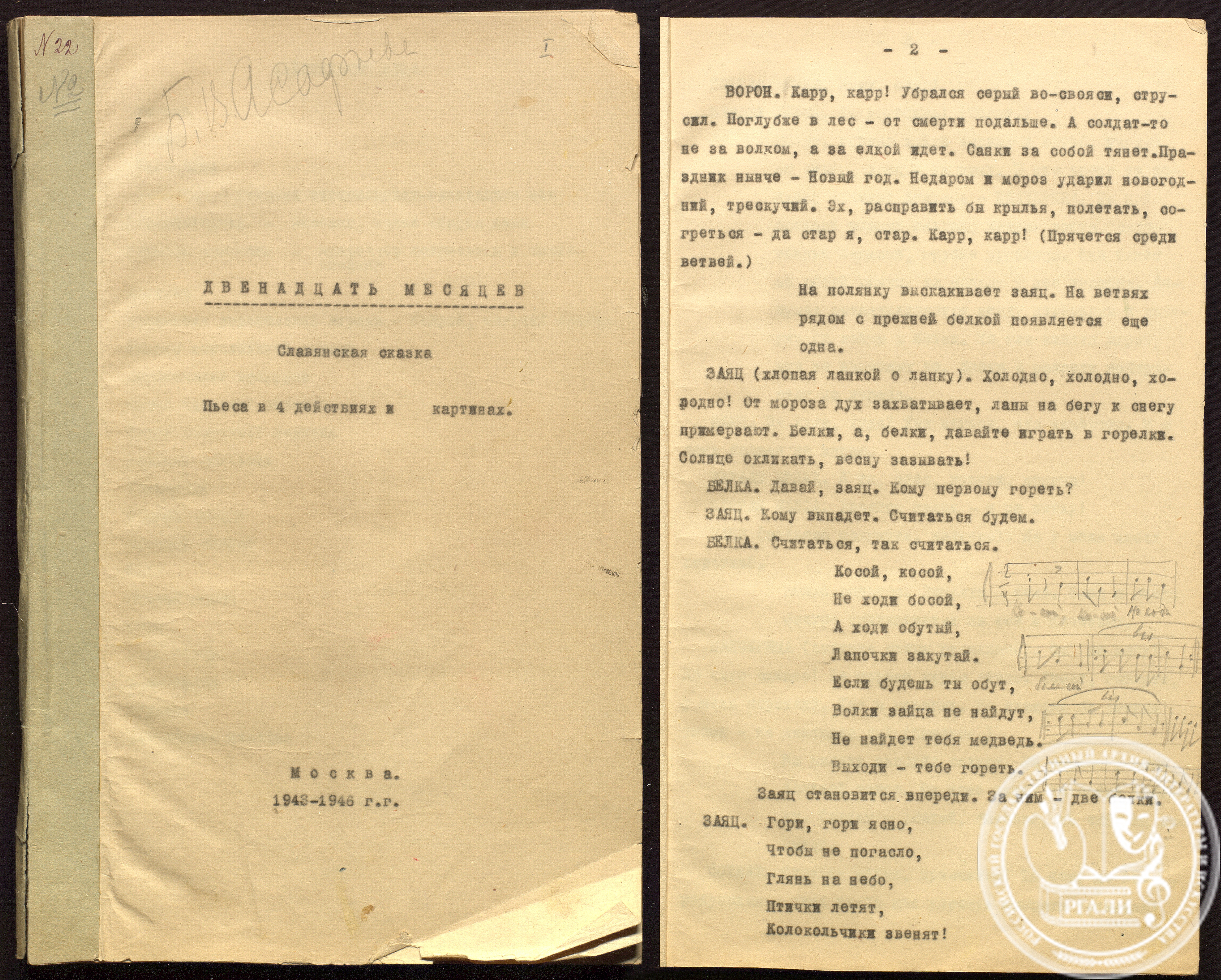 Для экспозиции РГАЛИ передал копии документов из фондов Главного управления по контролю за репертуаром при Комитете по делам искусств при СНК СССР (Ф. 656), Комитета по делам искусств при Совете Министров СССР (Ф. 962), Киностудии «Союзмультфильм» (Ф. 2469), а также личных фондов Б.В. Асафьева (Ф. 2658) и Н.М. Горчакова (Ф. 2958).