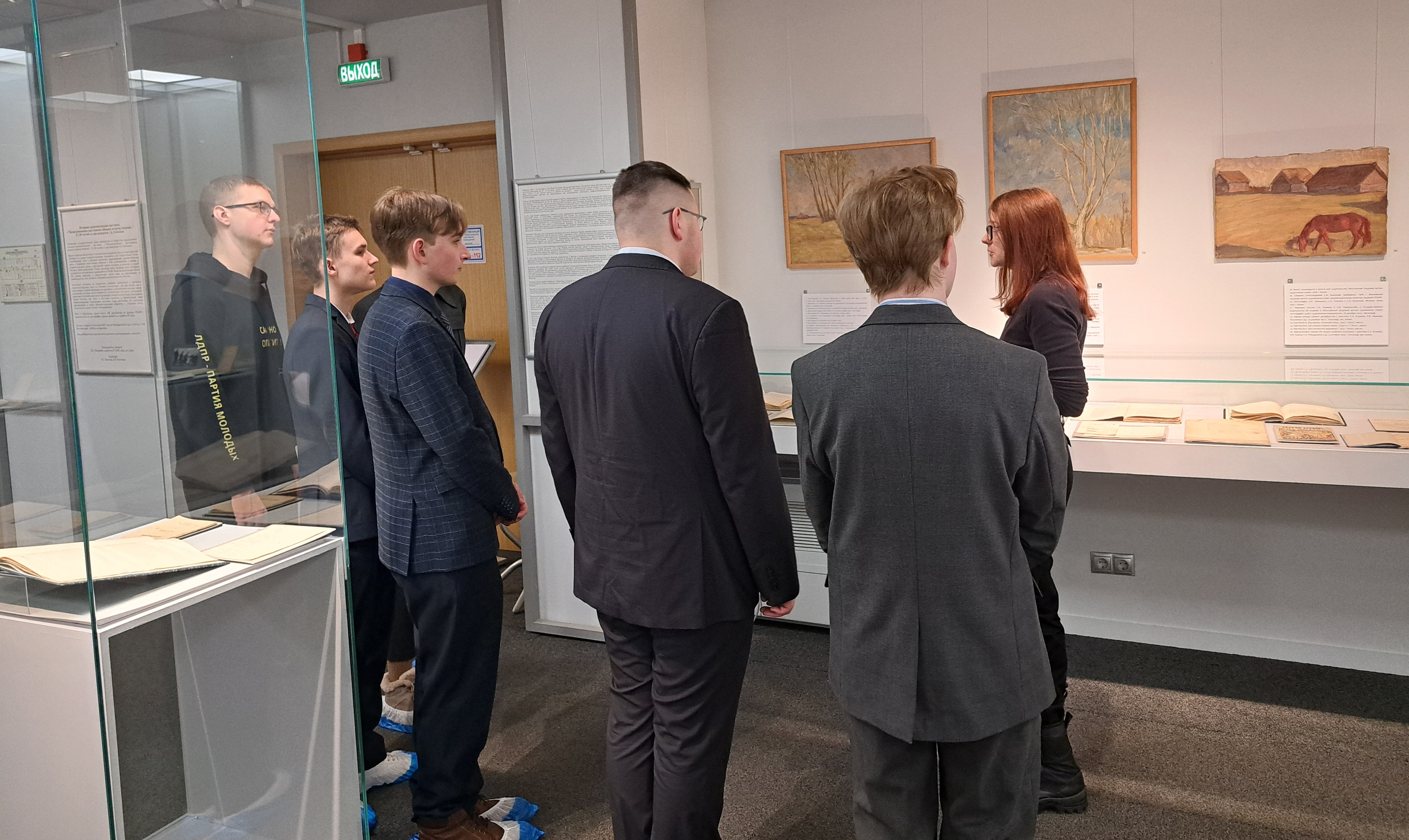 Студенты кафедры политологии Московского государственного университета имени Ломоносова в сопровождении заместителя декана по внеучебной работе О.Д. Тальской посетили выставку «”Предназначенное расставанье обещает встречу впереди…”. К 130-летию со дня рождения С.А. Есенина».