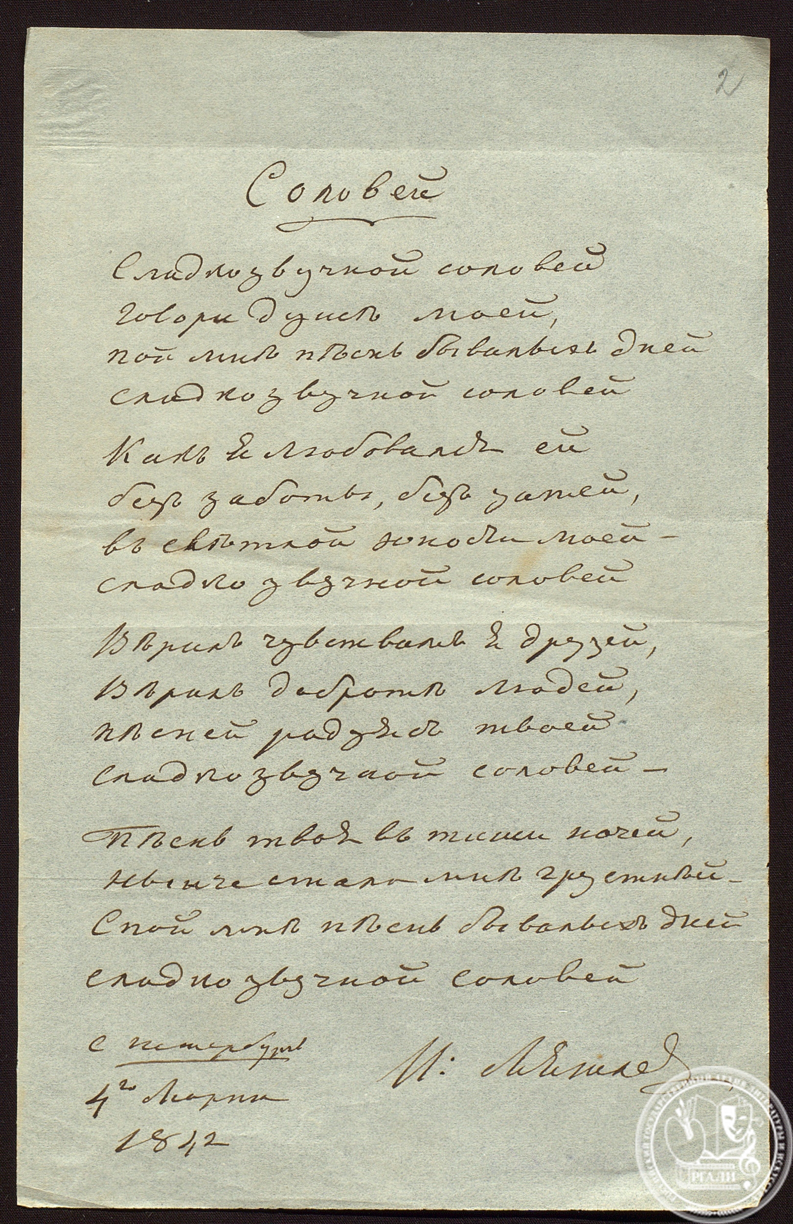 В это время дом Мятлевых ‒ современный дом № 9, старейшее здание на Исаакиевской площади, ‒ уже славился своими вечерами. Возведенный в 1760-е годы, дом принадлежал семье Мятлевых с XIX века по 1917 год. С конца 1820-х годов его душой был Иван Петрович. Без сомнения, он обладал поэтическими способностями, легко подбирал рифмы, сочинял стихотворные экспромты, каламбуры, эпиграммы, комедийные сценки, пробовал писать и традиционные произведения – элегии, послания, песни. Поэтическая атмосфера эпохи Золотого века русской литературы оказала влияние на увлечение Мятлева поэзией. В доме давались великосветские балы, устраивались вечера, проходили дружеские обеды, во время которых хозяин читал свои стихи.