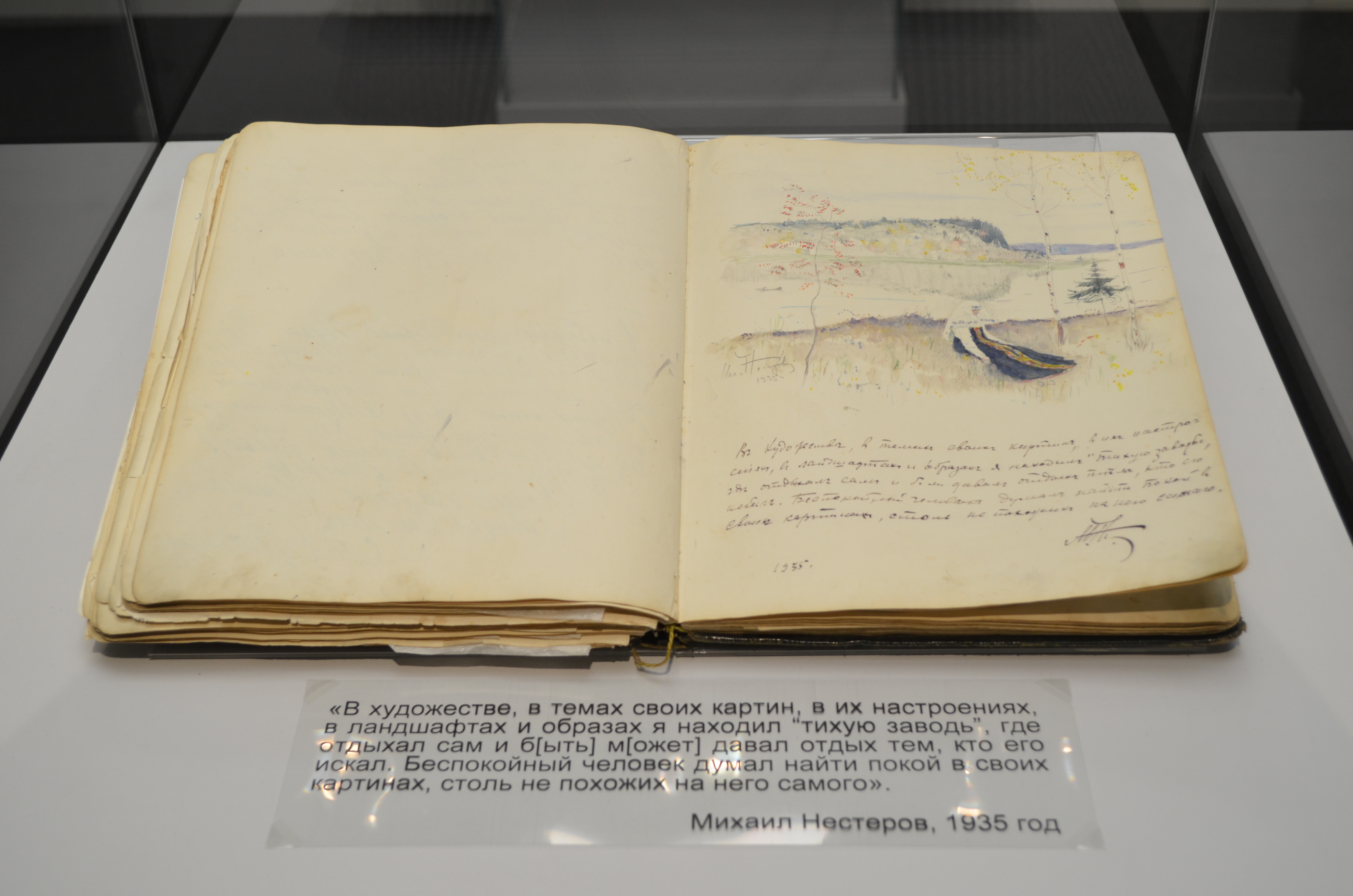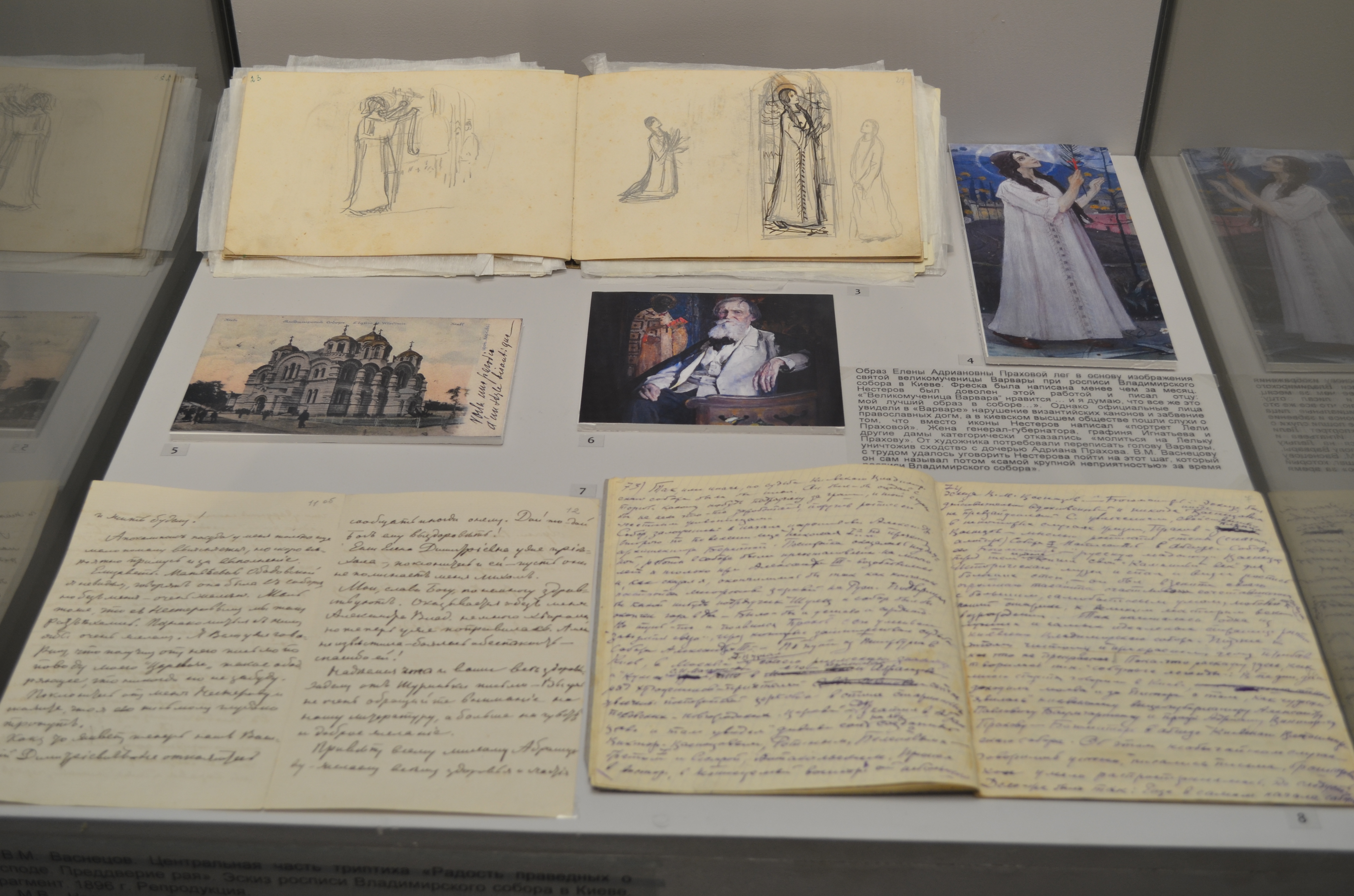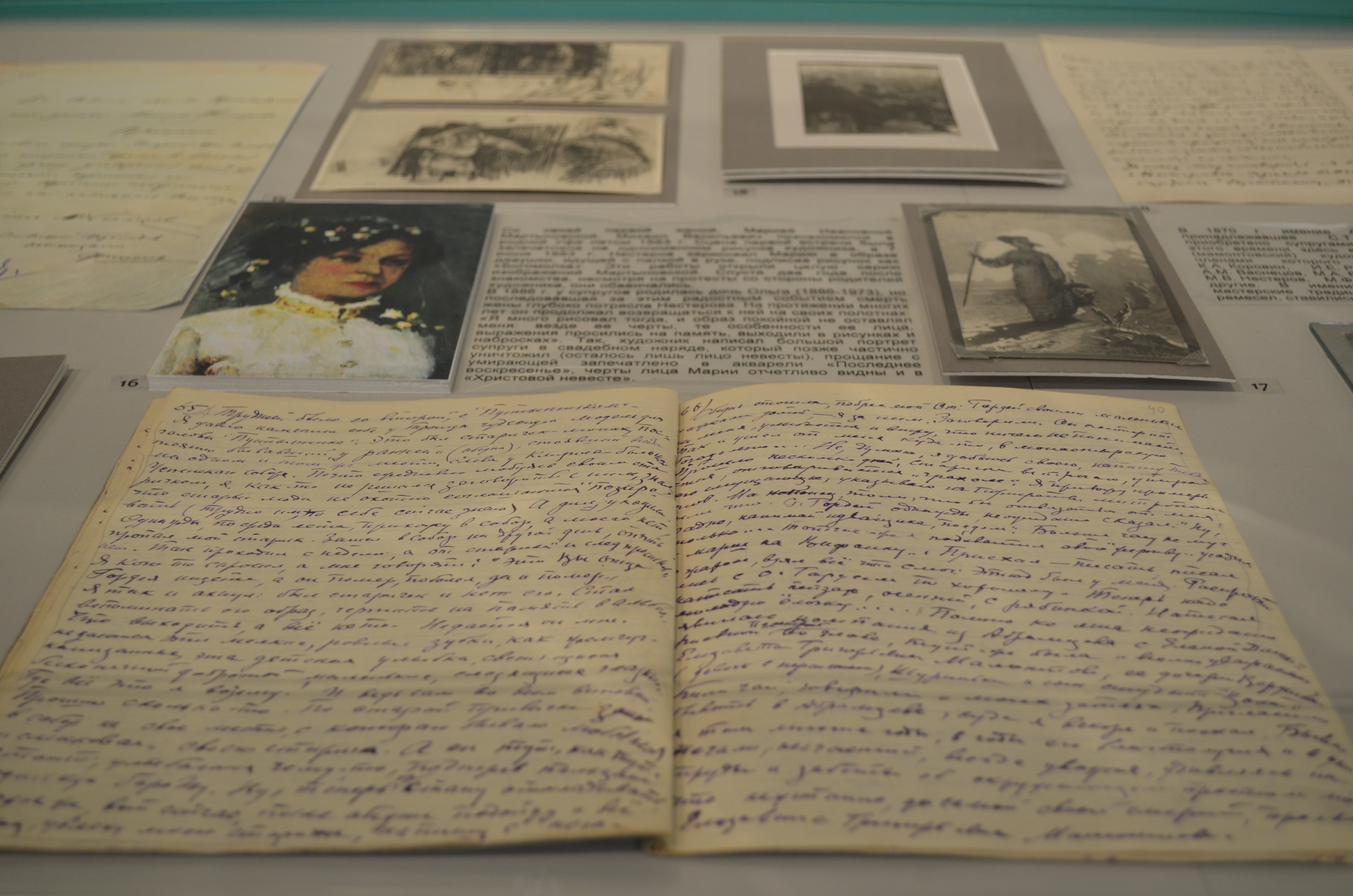 В силу трагических обстоятельств творческий архив М.В. Нестерова сохранился неполностью (в 1919 г. он был украден из пустовавшей московской квартиры художника и частично пропал, а частично разошелся по частным коллекциям), что придает каждому сохранившемуся наброску и этюду особый статус. Большинство представленных документов экспонируются впервые.