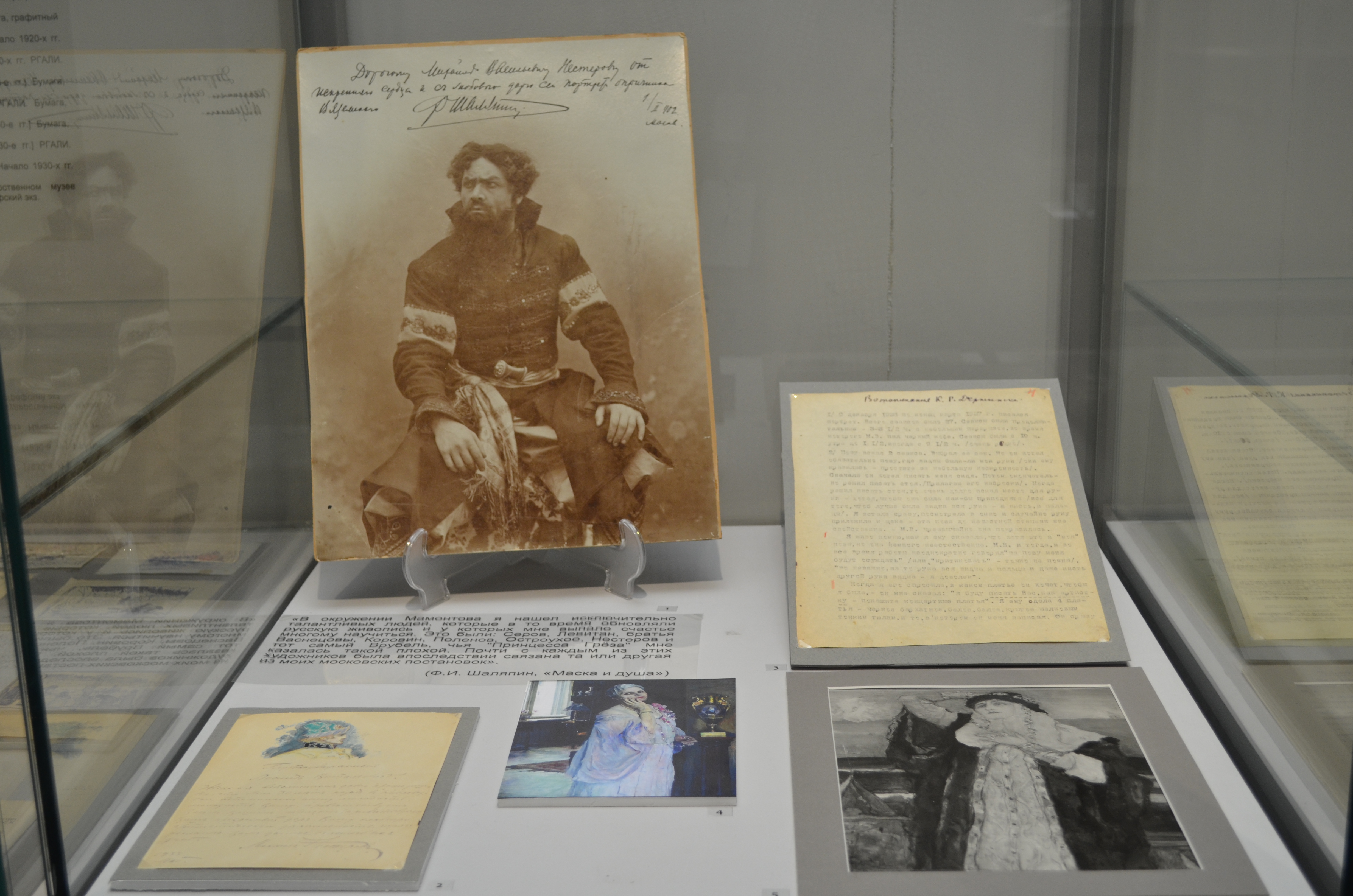 В основе экспозиции – уникальные источники из личного фонда М.В. Нестерова в РГАЛИ, документы его друга и биографа, известного коллекционера С.Н. Дурылина, среди которых немало материалов к биографии художника, его эскизы и рисунки, письма к родным и друзьям, фотографии, автограф воспоминаний Нестерова «Жизнь пережить – не поле перейти» (неслучайно эта грань творчества Михаила Васильевича была оценена отечественными литераторами, а автор ценнейших страниц о своем времени стал членом Союза советских писателей). На основе этих материалов, а также документов из почти 25 других собраний архива прослеживается путь творческого и духовного становления художника, начиная с учебы в Московском училище живописи, ваяния и зодчества и в Императорской Академии художеств в Петербурге, через попытки найти свое место в искусстве, к широкому признанию и расцвету его творчества.