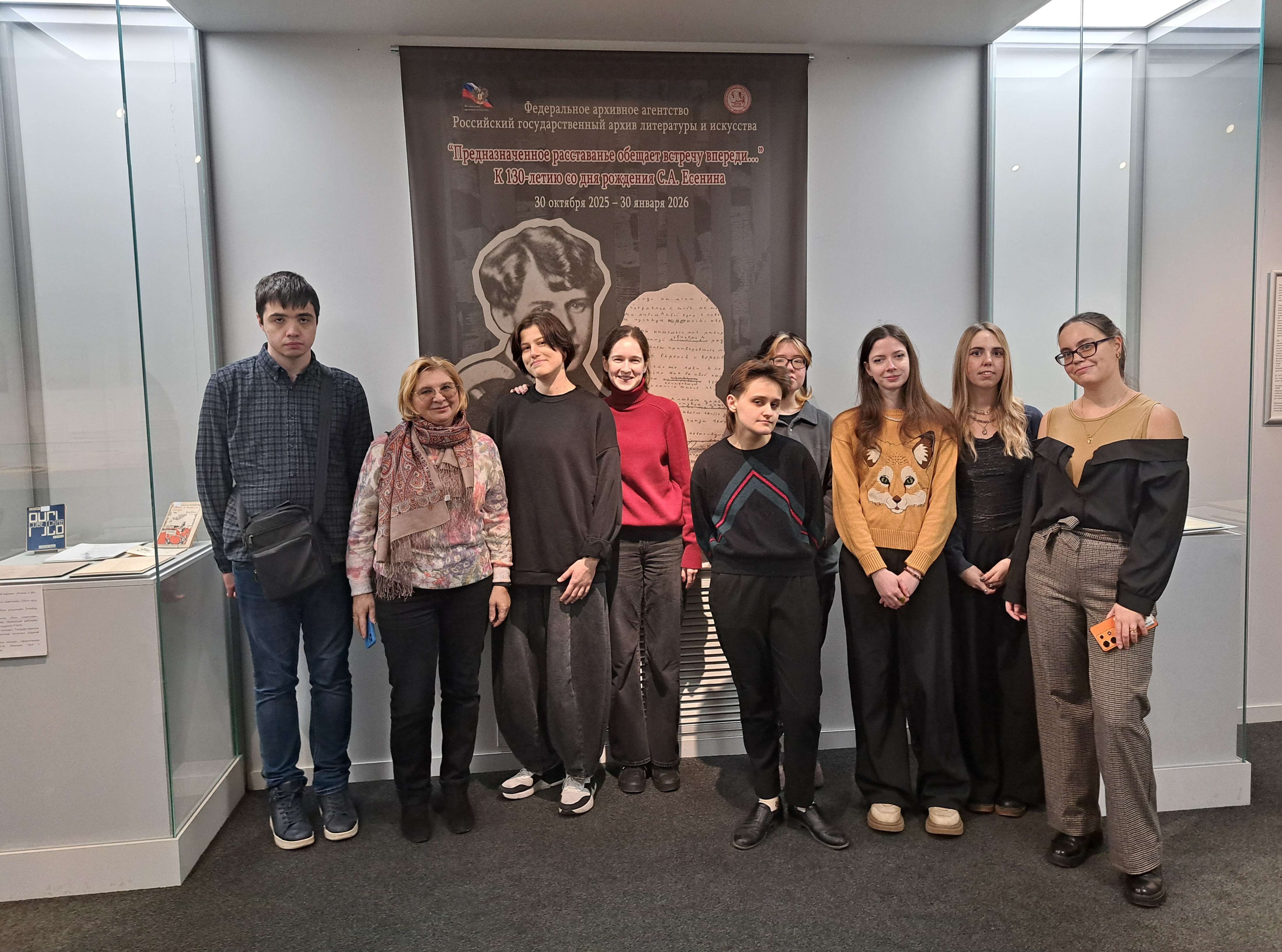 20 ноября архив студенты Историко-архивного института РГГУ вместе с доцентом кафедры архивоведения О.Е. Антоновой побывали на выставке «”Предназначенное расставанье обещает встречу впереди…”. К 130-летию со дня рождения С.А. Есенина»...