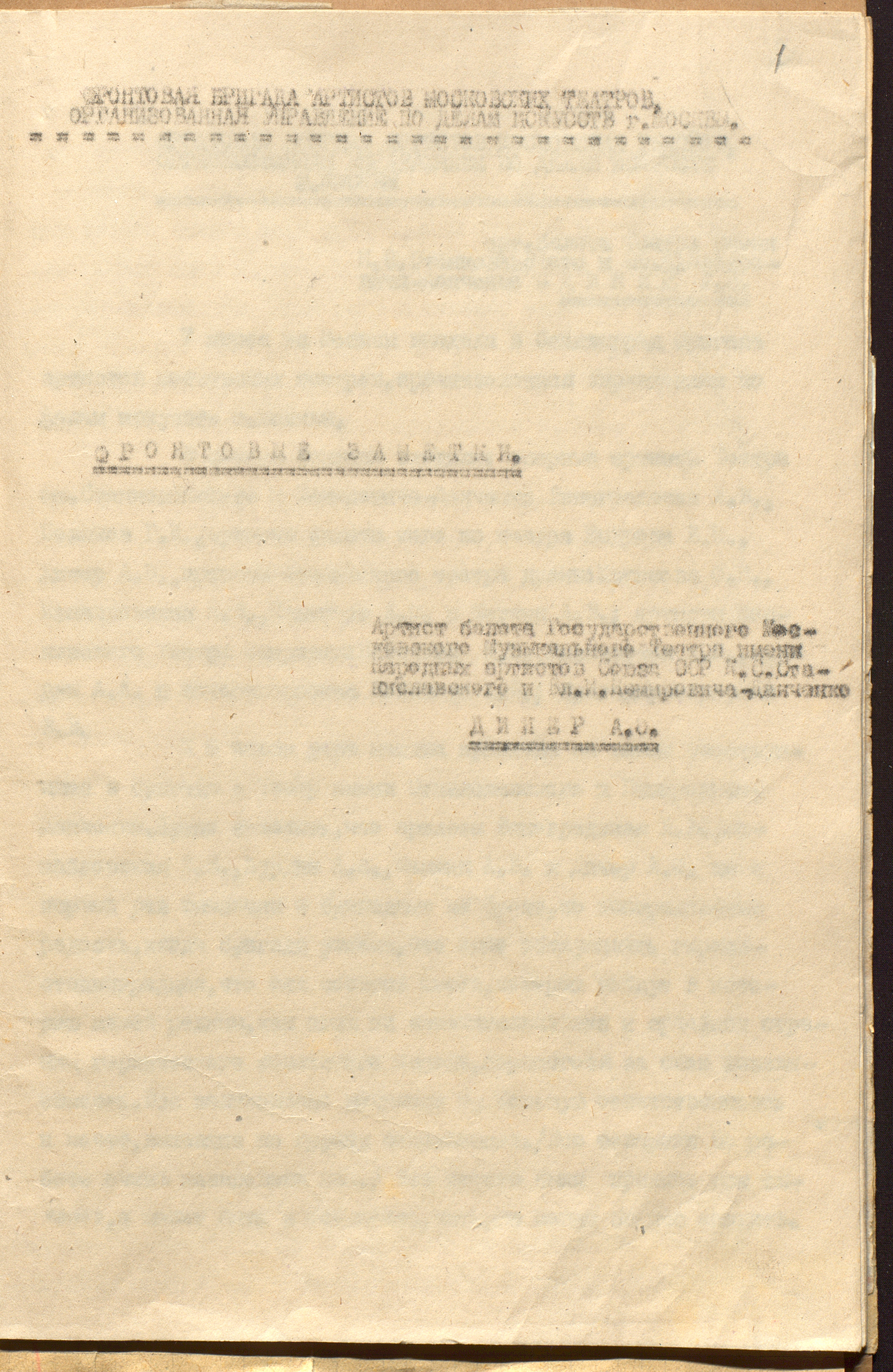 «Творческий рапорт» фронтовой бригады артистов ВГКО под руководством М.В. Бахраха. 20 марта 1943 г. Типограф. экз. Ф. 962. Оп. 5. Ед. хр. 640. Л. 41-45об