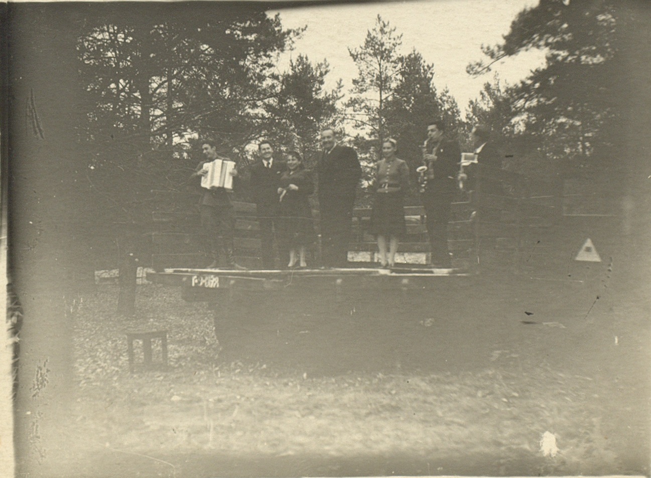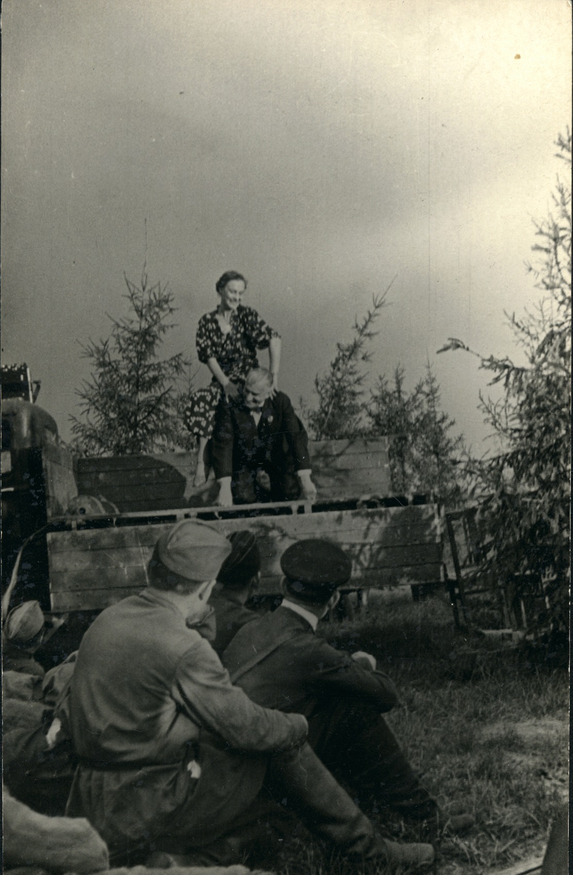 Фотография артистов фронтовой бригады М.Н. Гаркави на импровизированной сцене – открытом кузове автомобиля. 1944-1945 гг. Ф. 3063. Оп. 1. Ед. хр. 136. Л. 12