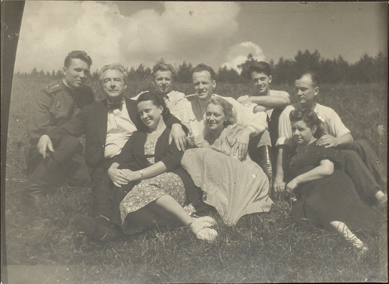 Фотографии участников фронтовой концертной бригады Малого театра на отдыхе во время выезда на фронт. Среди присутствующих: А.А. Остужев, В.Н. Аксенов, Н.А. Арди и др. [Лето 1943 г.] Ф. 2403. Оп. 1. Ед. хр. 470. Л. 8, 9