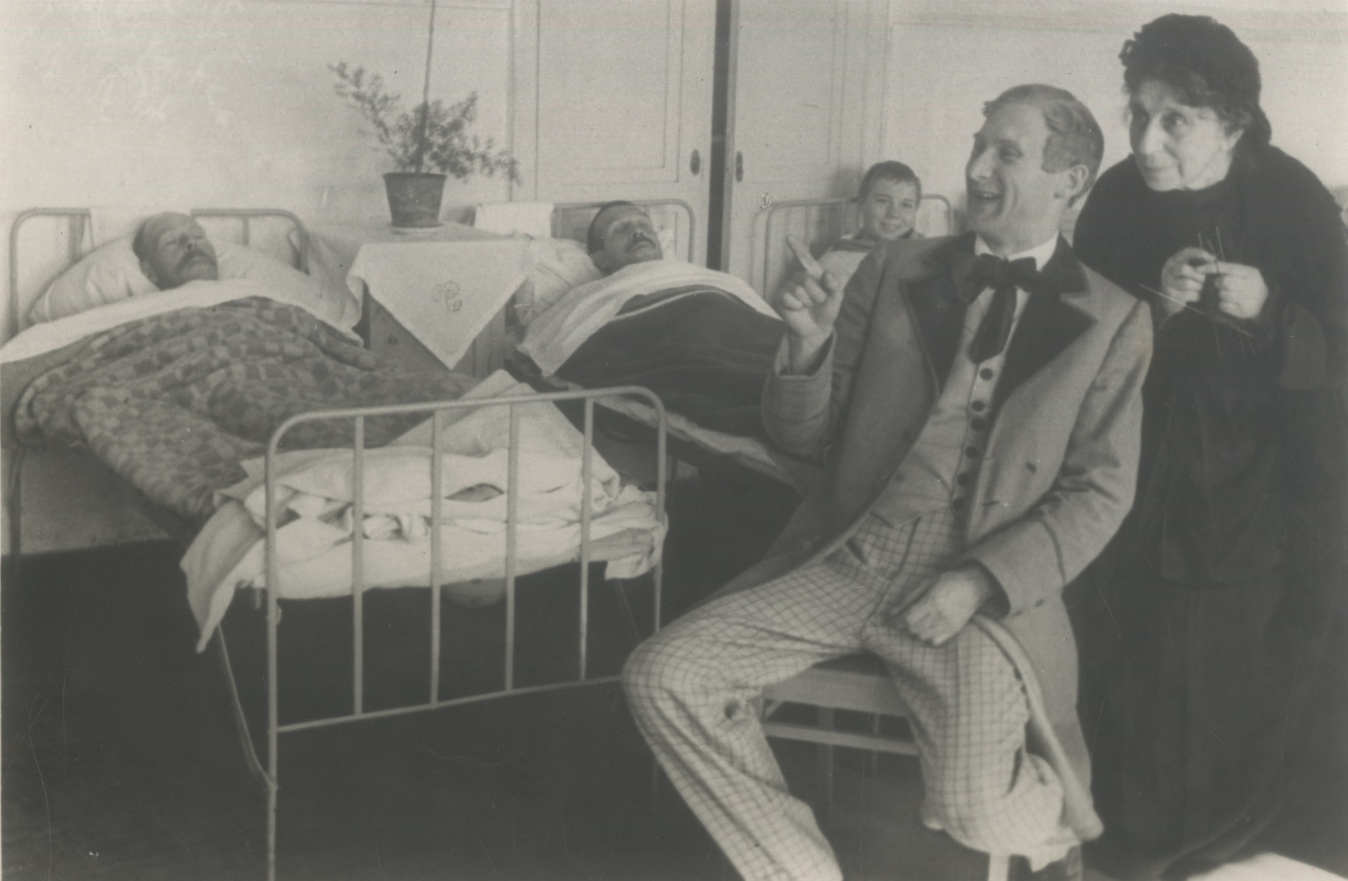 Фотография сцены из представления фронтовой бригады Московского театра драмы в военном госпитале. Сидит Народный артист РСФСР Д.Н. Орлов. 1943 г. Ф. 2932. Оп. 3. Ед. хр. 417. Л. 1