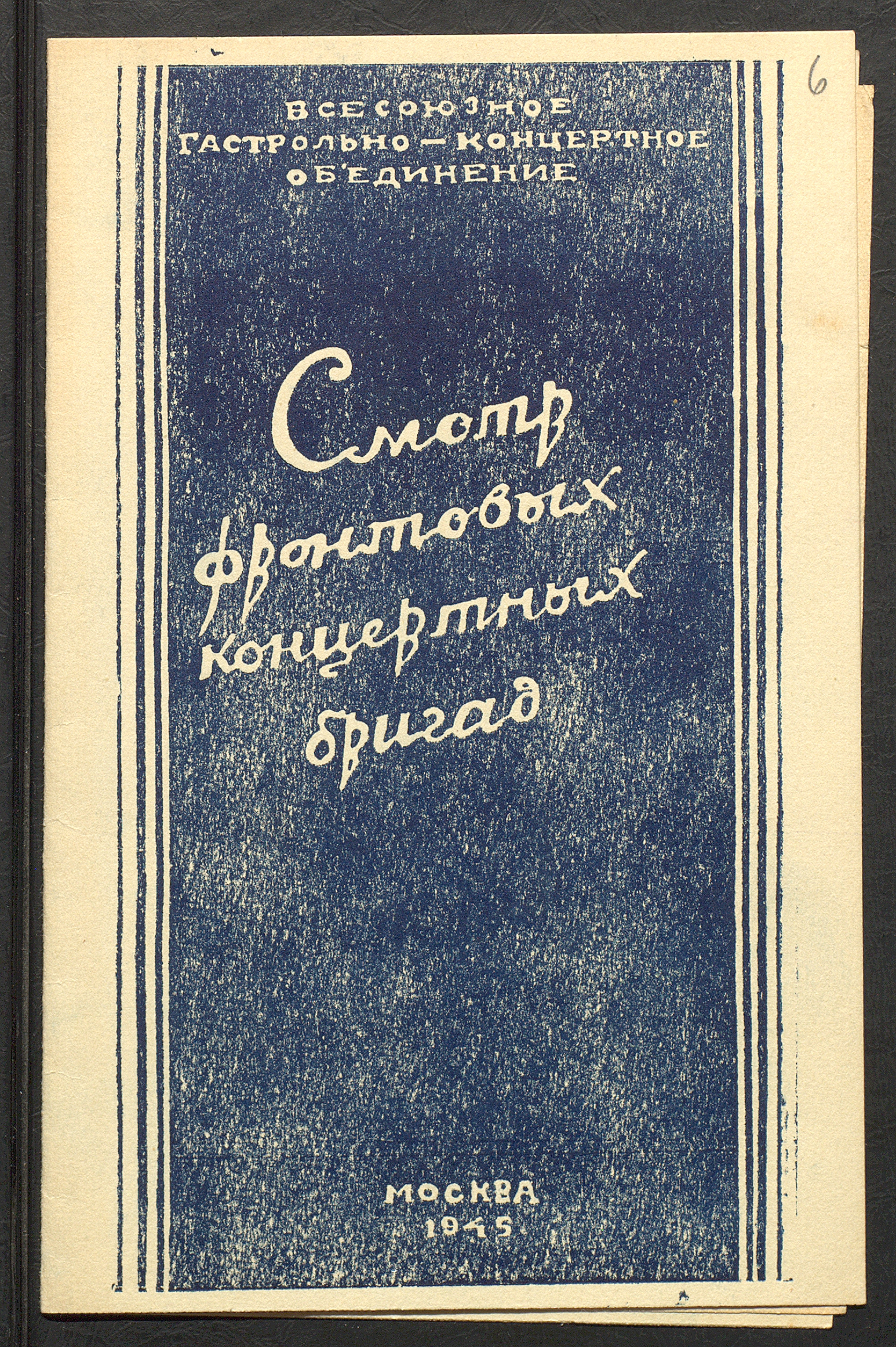 Программа смотра артистов фронтовых концертных бригад ВГКО в Москве. Февраль 1945 г. Типограф. экз. Ф. 3063. Оп. 1. Ед. хр. 83. Л. 6-8об