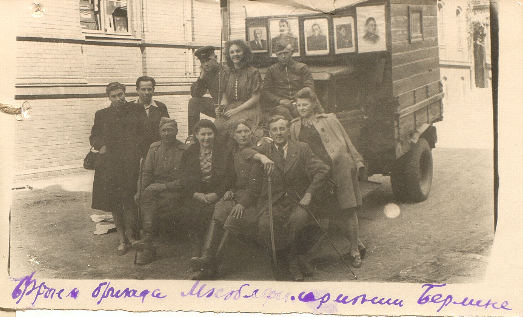 Фотография фронтовой бригады Московской областной филармонии под руководством А.Ф. Симонова в Берлине. [Май 1945 г.] Ф. 962. Оп. 5. Ед. хр. 818. Л. 57