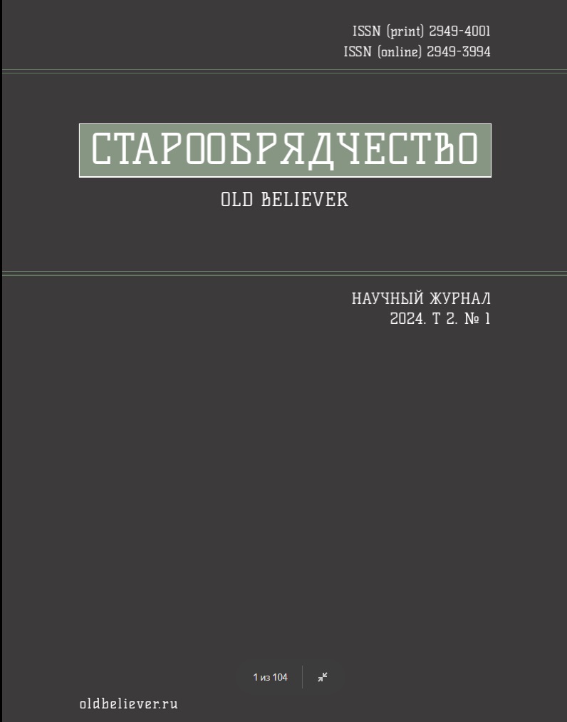 Статья главного специалиста РГАЛИ Юлии Валерьевны Масловой для журнала «Старообрядчество» (2024, Т. 2. № 1). Стр. 51–70.