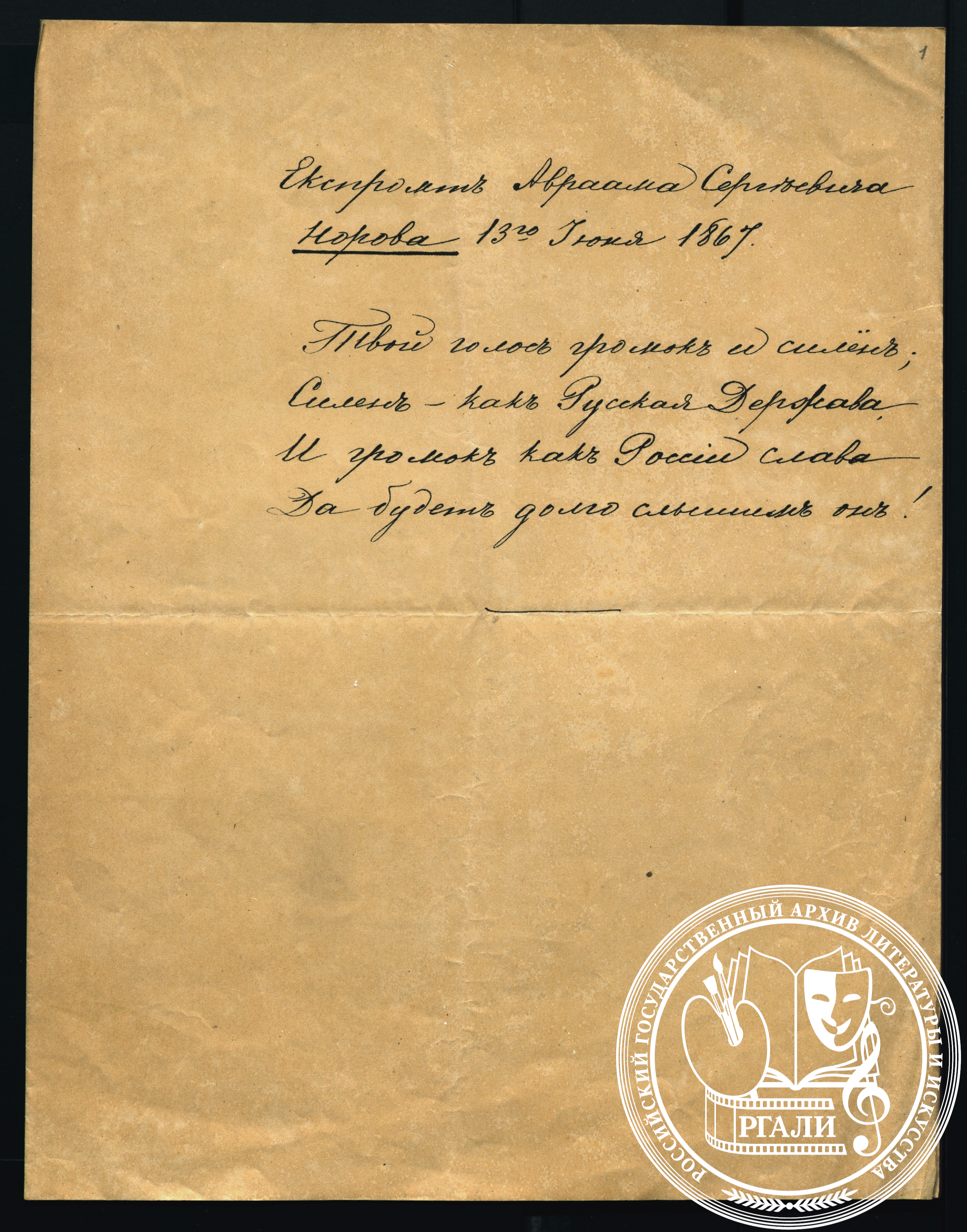 эту цитату из Вергилия, по заверению неизвестного биографа, А.С. Норов произнес, любуясь природой окрестностей имения своей сестры за два года до смерти (РГАЛИ Ф. 349. Оп. 1. Ед. хр. 2). За его плечами была насыщенная жизнь, полная отваги, творчества, служения Родине и путешествий, доказавшая искреннее стремление Авраама Сергеевича не к славе, а к пользе — для себя и своего Отечества.