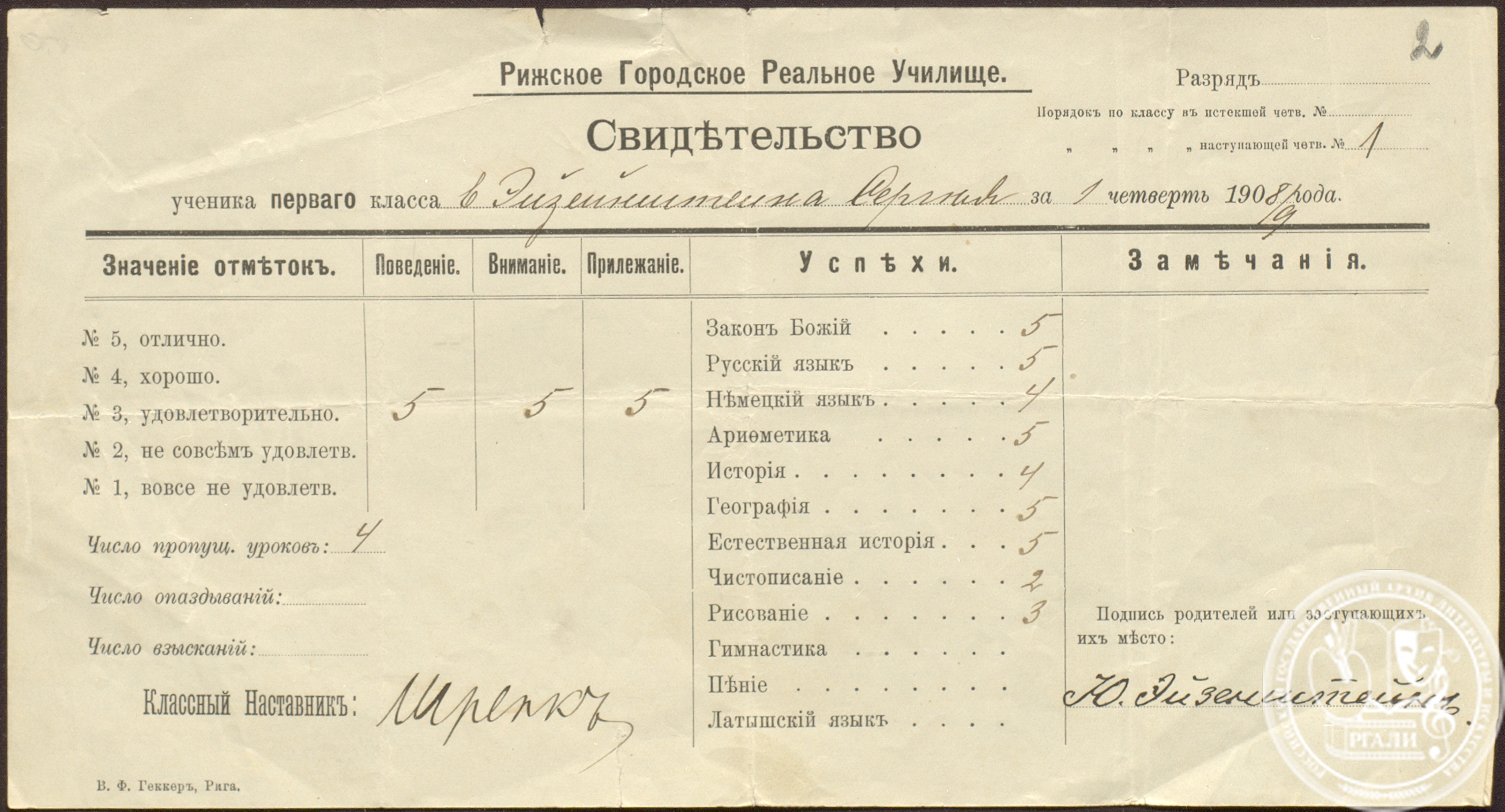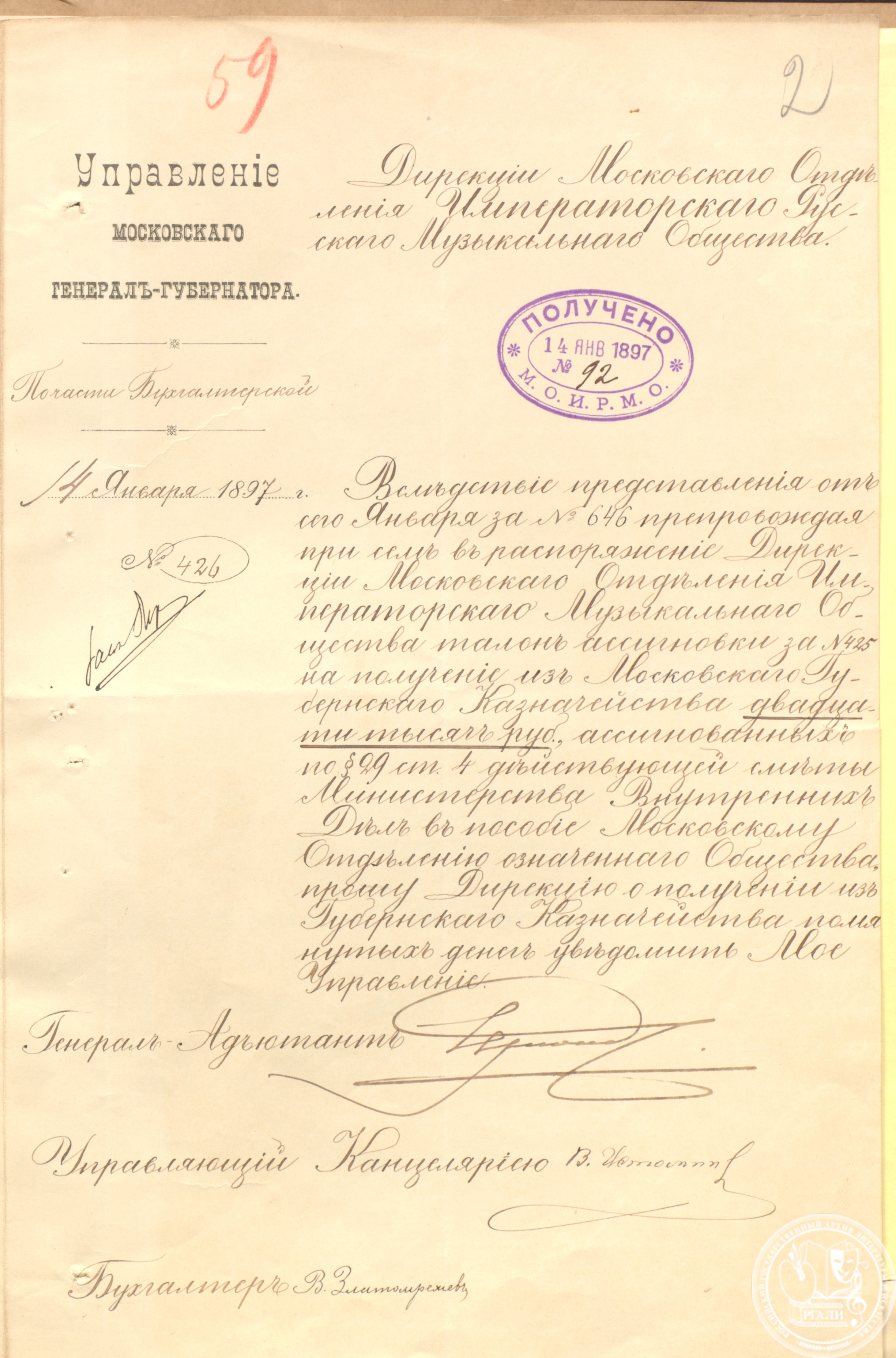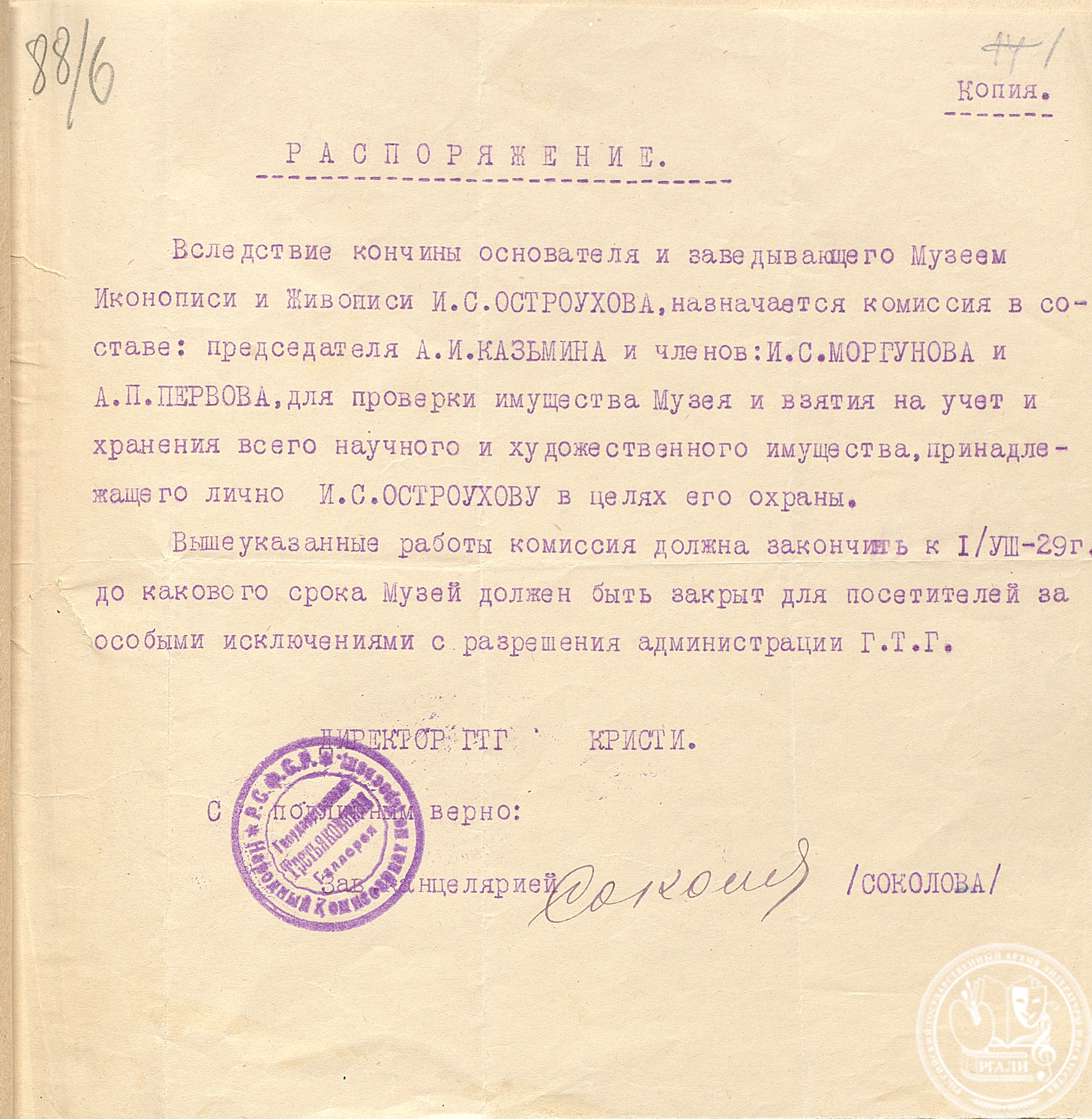 В экспозицию вошло несколько документов из фондов Московского отделения Русского музыкального общества (Ф. 661) и Строгановского центрального художественно-промышленного училища (Ф. 677).