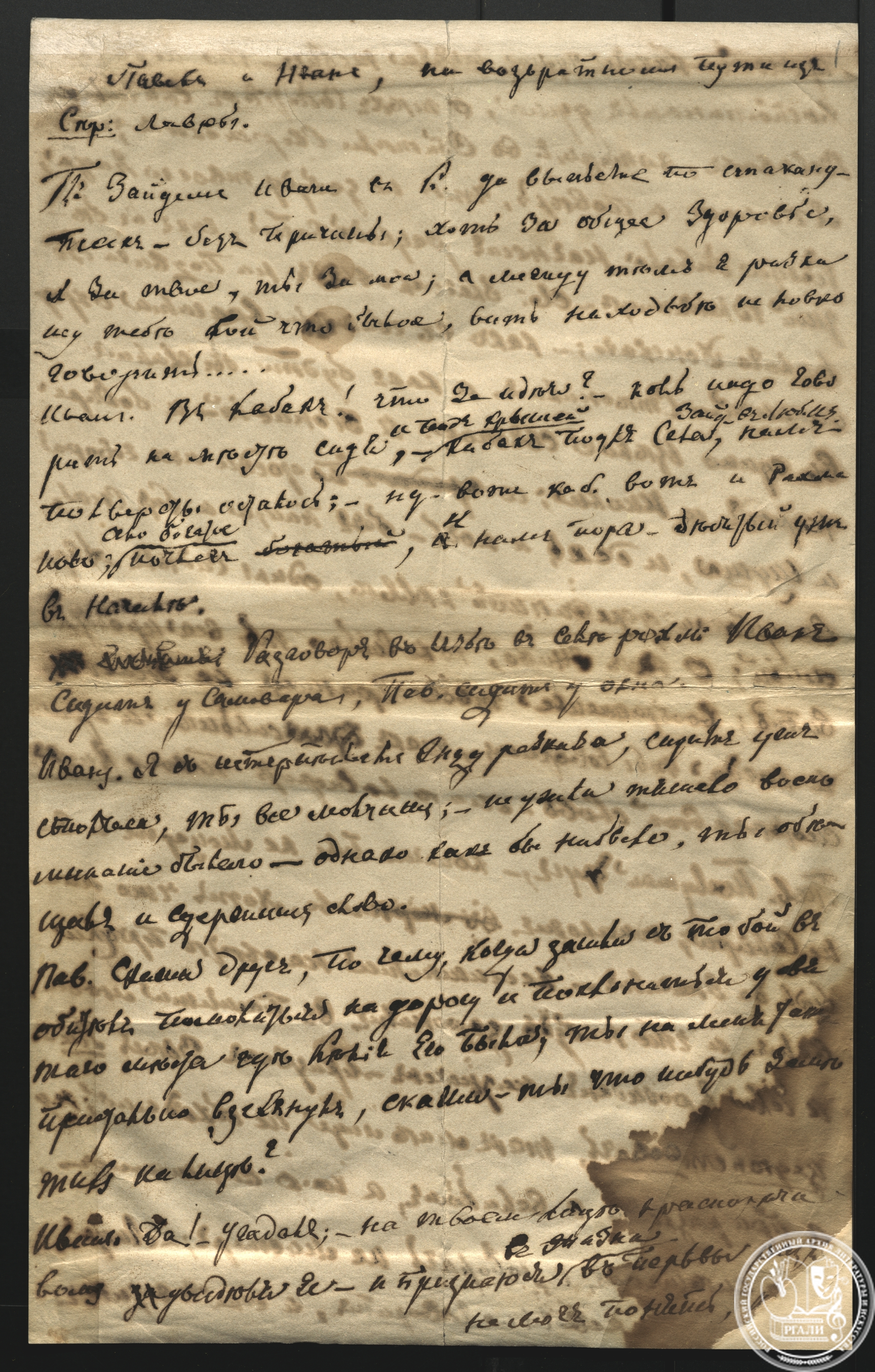 В составе фонда — автографы стихотворений П.С. Мочалова, дневник с записями о П.И. Орловой-Савиной, а также отрывок из его пьесы «Павел и Иван на возвратном пути из Сергиевой Лавры». В РГАЛИ сохранились письма Павла Степановича к поэту Н.В. Беклемишеву и актеру И.В. Самарину за 1847 г. о текущих делах и творческих планах. Не менее любопытны стихотворения, посвященные артисту, каталог выставки, устроенной Обществом любителей российской словесности в память о П.С. Мочалове и его портрет.
