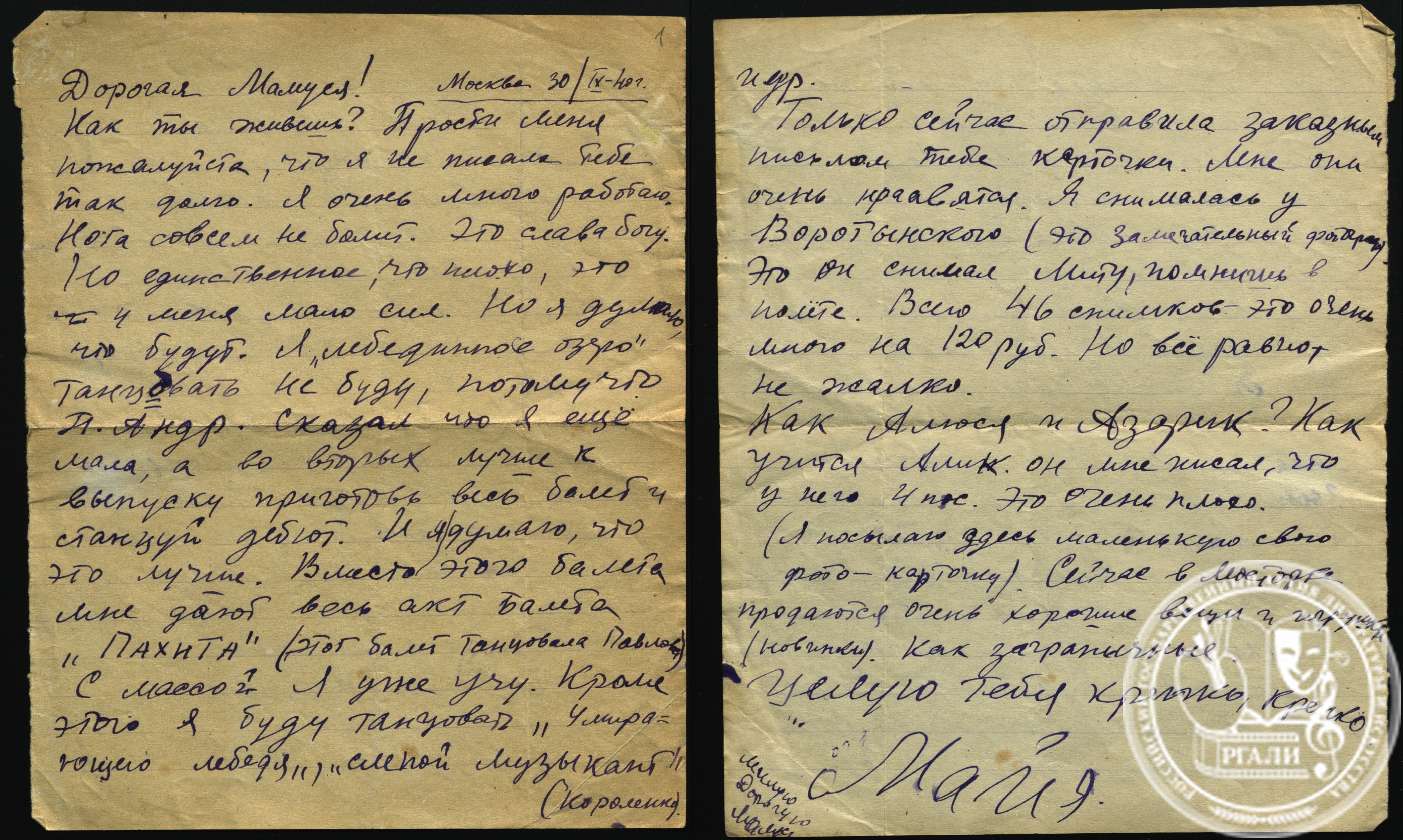 В РГАЛИ хранится фонд М.М. Плисецкой, в полной мере освещающий ее творческую и человеческую биографию, переданный в архив самой балериной в 2001 и 2006 годах, а после её ухода постоянно пополнявшийся Родионом Константиновичем Щедриным в 2016 – 2023 годах. РГАЛИ вправе гордиться фондом М.М. Плисецкой, содержащем в таком полном объеме документы жизни и творчества этой великой балерины. В фонде отложилось колоссальное количество фотографий Майи Михайловны за разные периоды ее творческой жизни, а также её путешествий с Родионом Константиновичем. Многие фотографии атрибутированы самой балериной. Не менее полно представлено и её рукописное наследие: рукописи многочисленных очерков, статей, заметок, подготовленных интервью и, конечно, черновые варианты и беловые рукописи книги «Я, Майя Плисецкая».