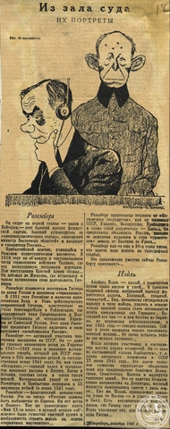 Из этих наблюдений у Всеволода Вишневского родилась серия публикаций психологических портретов нацистских главарей, которая была блестяще проиллюстрирована художниками творческой группы Кукрыниксы – Михаилом Куприяновым, Порфирием Крыловым и Николаем Соколовым. О Геринге Вишневский писал: «Толстый, разбухший авантюрист, палач-садист, взяточник, делец, развратник». Гесс в его описании предстал как «мрачный, жестокий субъект, полный нечеловеческой злости и готовый идти на любую провокацию и преступление. Выродок… обезьяньи, выпуклые надбровные дуги, провалившиеся щеки с темной щетиной и запавшие угрюмо-мрачные глаза». Риббентроп, по наблюдениям писателя, старался «казаться самым невозмутимым из подсудимых» и «играть в вельможу», а Розенберга он характеризовал как «фанатического ненавистника России».