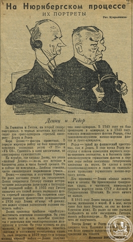 Затем последовали очерки «На процессе в Нюрнберге», «Заговор гитлеровцев против мира», «Из зала суда», цикл «Их портреты» и др. Часть из них была перепечатана американскими изданиями. «Этот процесс, – отмечал В.В. Вишневский в одной из статей, – войдет в историю. Он явится важным этапом в деле морально-политического разгрома поверженного фашизма».
