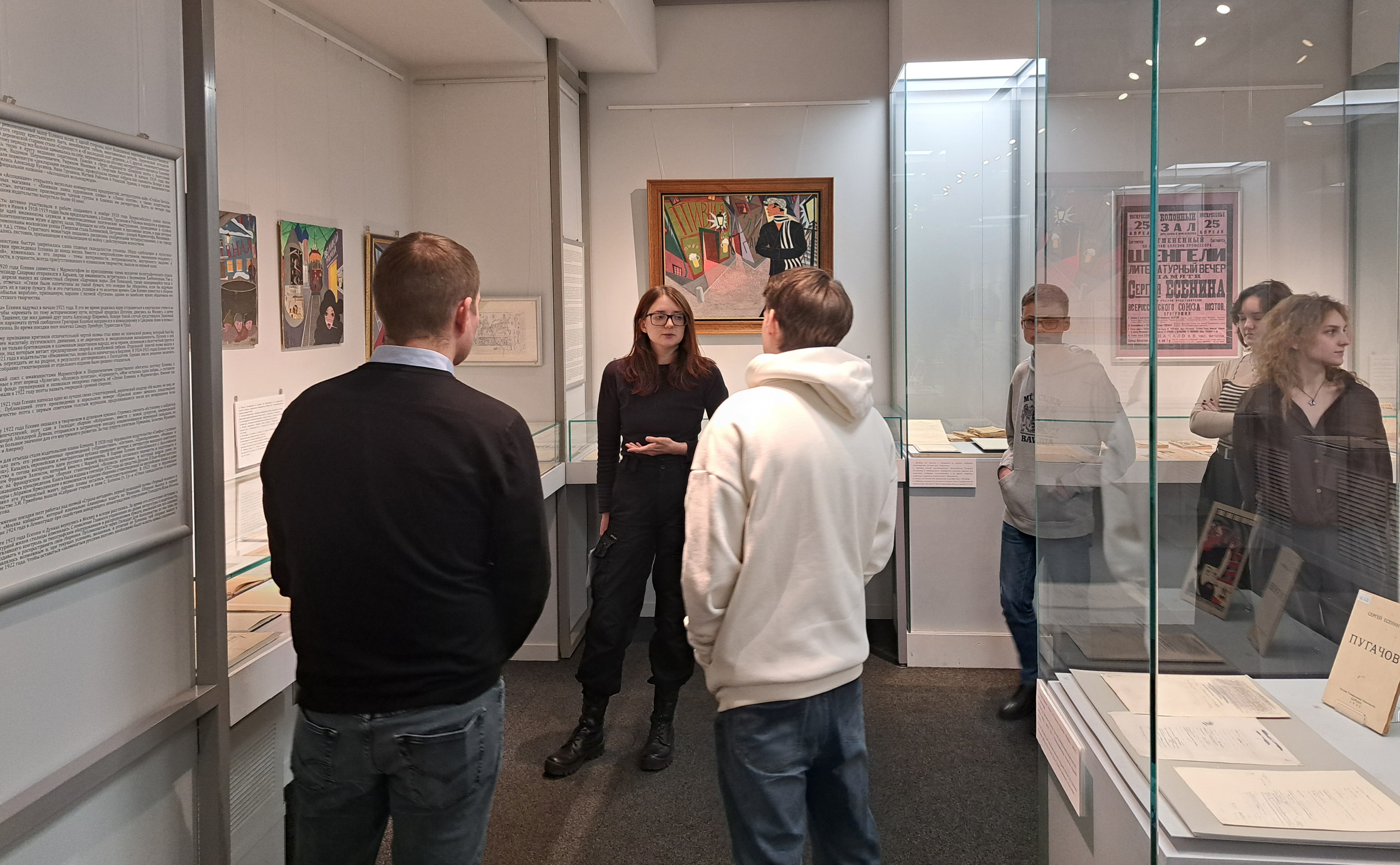 В выставочном зале РГАЛИ главный специалист К.С. Куксова провела для обучающихся кураторскую экскурсию по выставке «”Предназначенное расставанье обещает встречу впереди…”. К 130-летию со дня рождения С.А. Есенина».