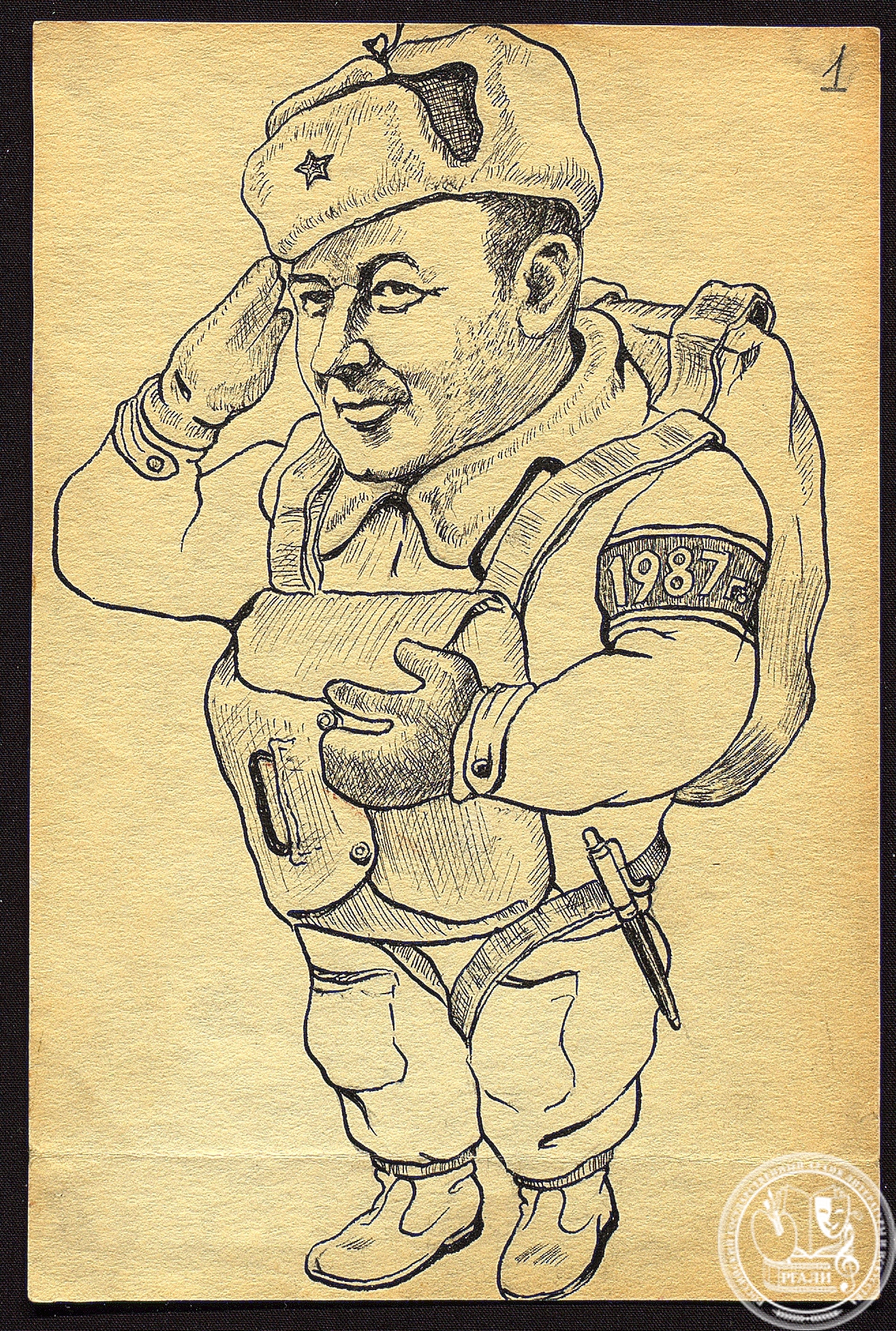 • Аркадий Зайцев. Шарж на К.Я. Ваншенкина. 1987 г. РГАЛИ. Ф.3449. Оп.1. Тушь, перо, бум.