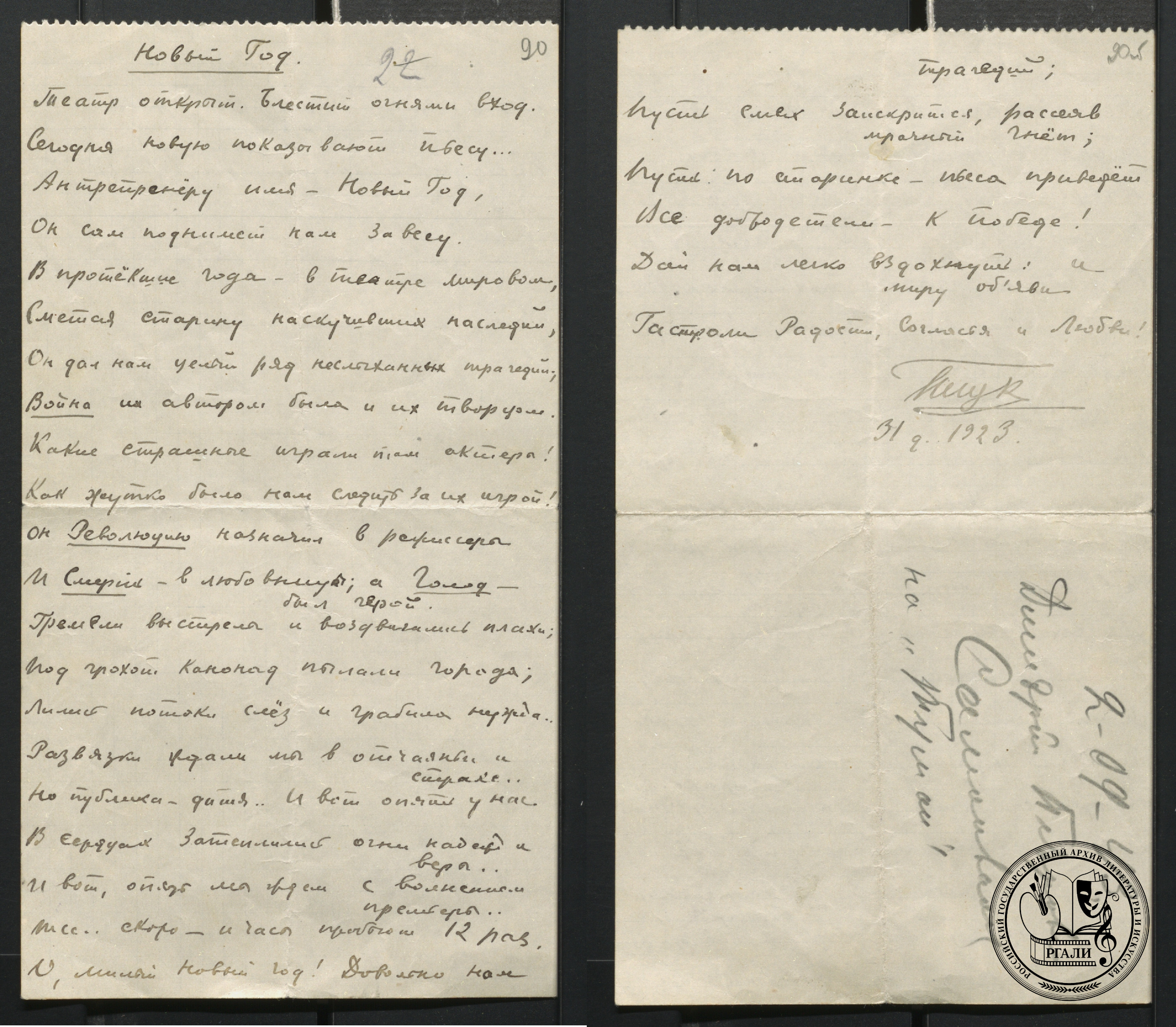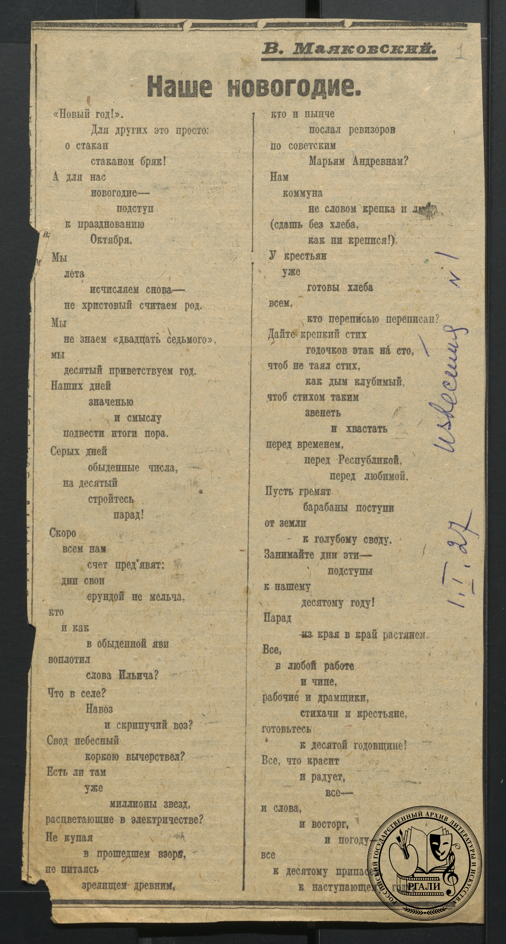 В преддверии праздника мы нашли «самые новогодние» стихи из фондов Российского государственного архива литературы и искусства.