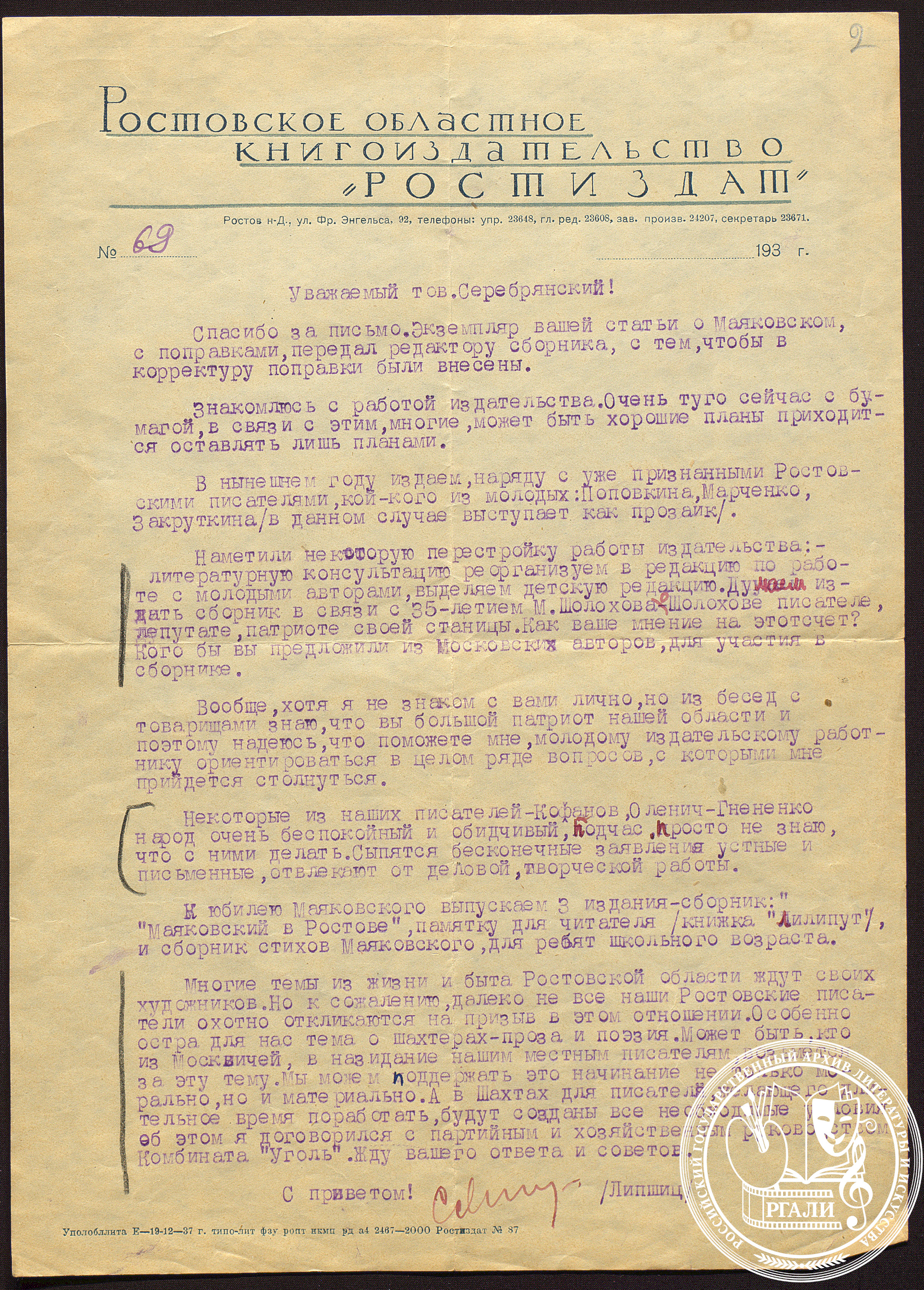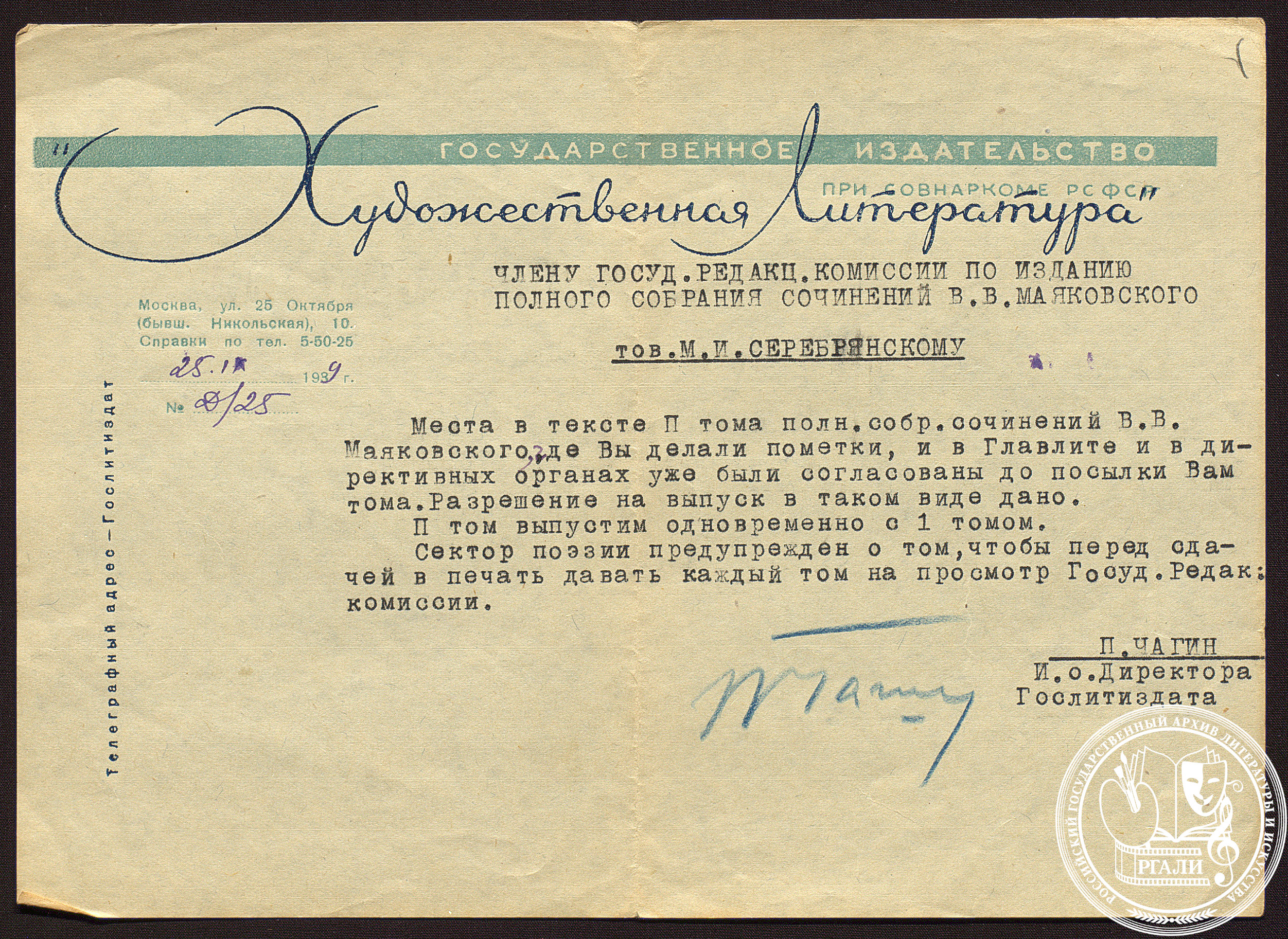 В других фондах архива можно найти около пятидесяти статей, рецензий и писем М. Серебрянского.