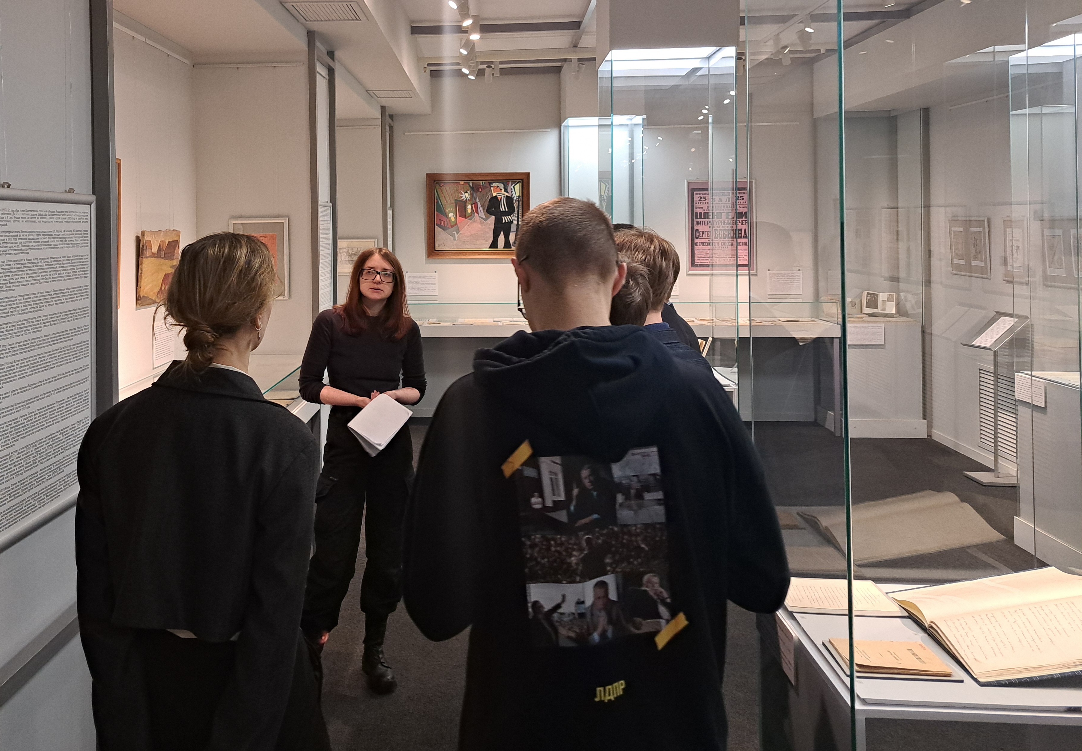 Студенты кафедры политологии Московского государственного университета имени Ломоносова в сопровождении заместителя декана по внеучебной работе О.Д. Тальской посетили выставку «”Предназначенное расставанье обещает встречу впереди…”. К 130-летию со дня рождения С.А. Есенина».