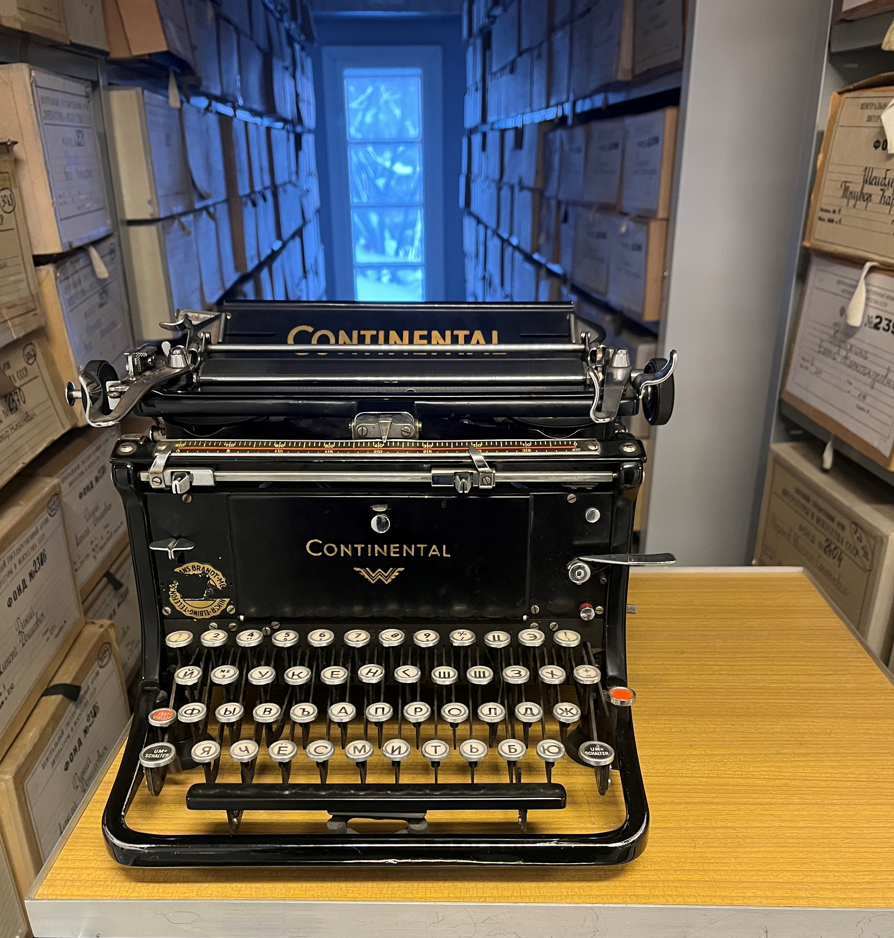 В архивохранилище личных фондов главный специалист Г.И. Терехова показала мемориальные предметы, хранящиеся в РГАЛИ, среди которых перьевая ручка М.И. Цветаевой, печатная машинка К.М. Симонова и хлопушку со съемок фильма А.В. Баталова «Три толстяка».
