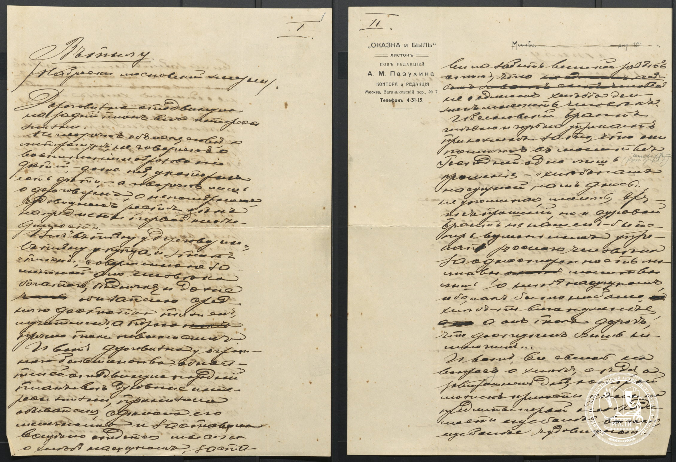 Однако и в других фондах есть материалы, касающиеся Пазухина. Например, в фонде писателей Е.И. Вашкова (ф. 90) и С.А. Гарина (ф. 146) можно найти письма, рисунки, визитные карточки.