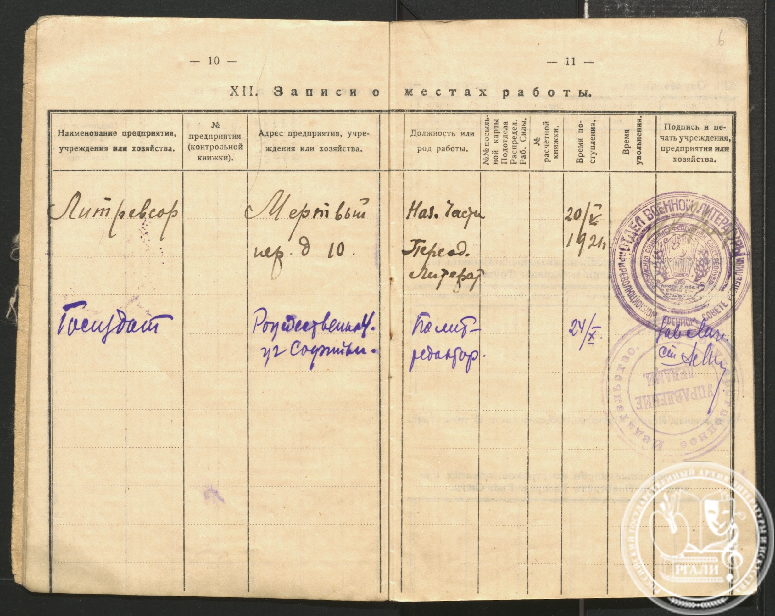 В 1921 году вернулся в Москву и посвятил себя уже литературной работе. Судя по записям в трудовой книжке, в 1921 году он служил начальником части в отделе военной литературы при Реввоенсовете республики, с 24 октября того же года ‒ политредактором Госиздата.
