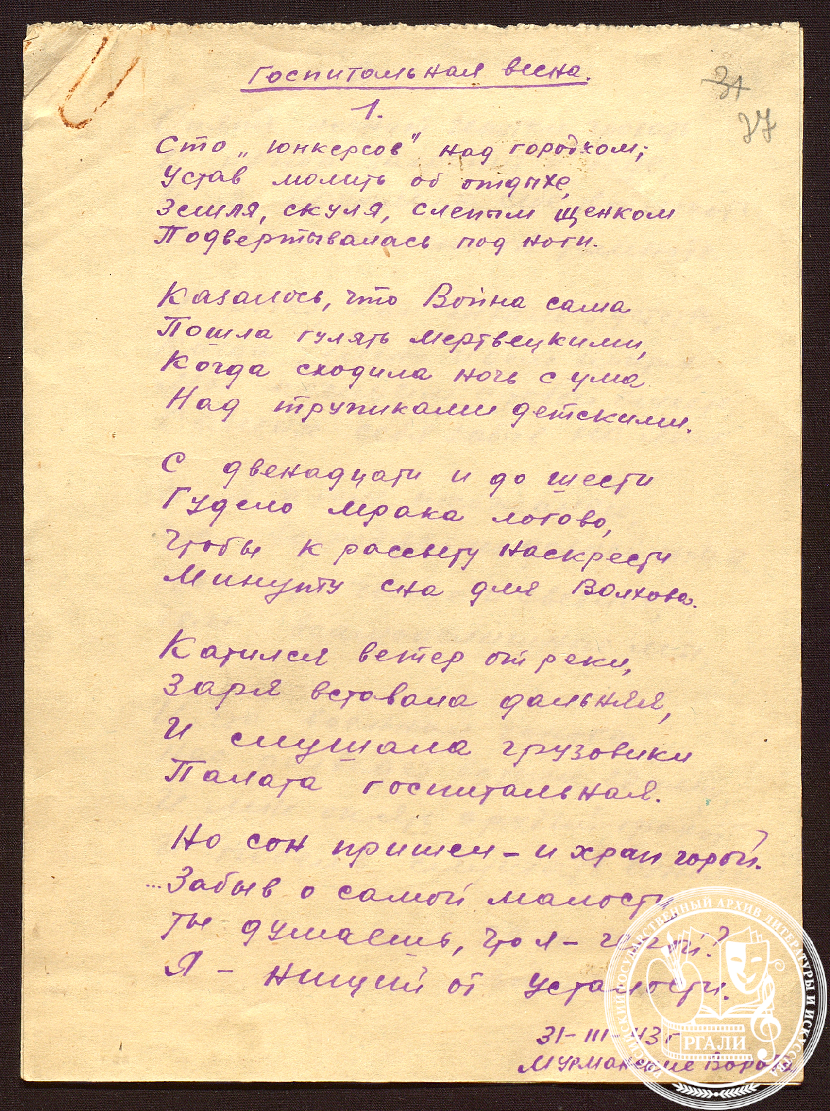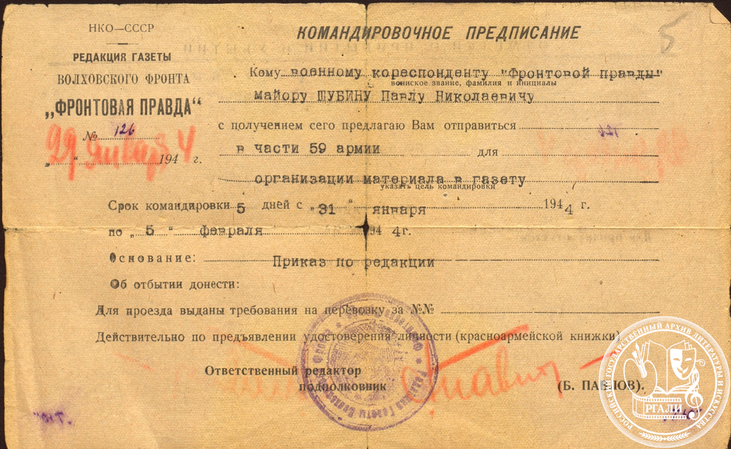 начальник отдела РГАЛИ